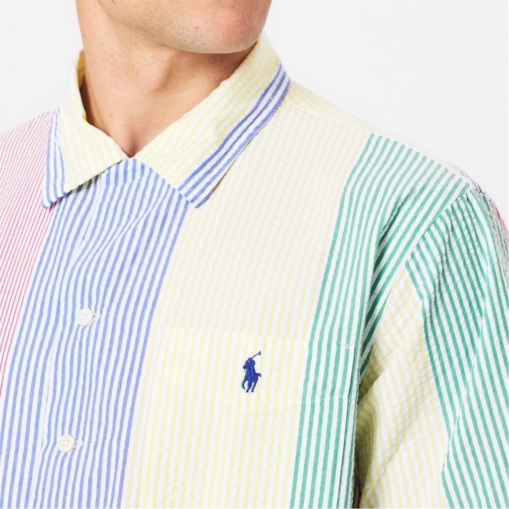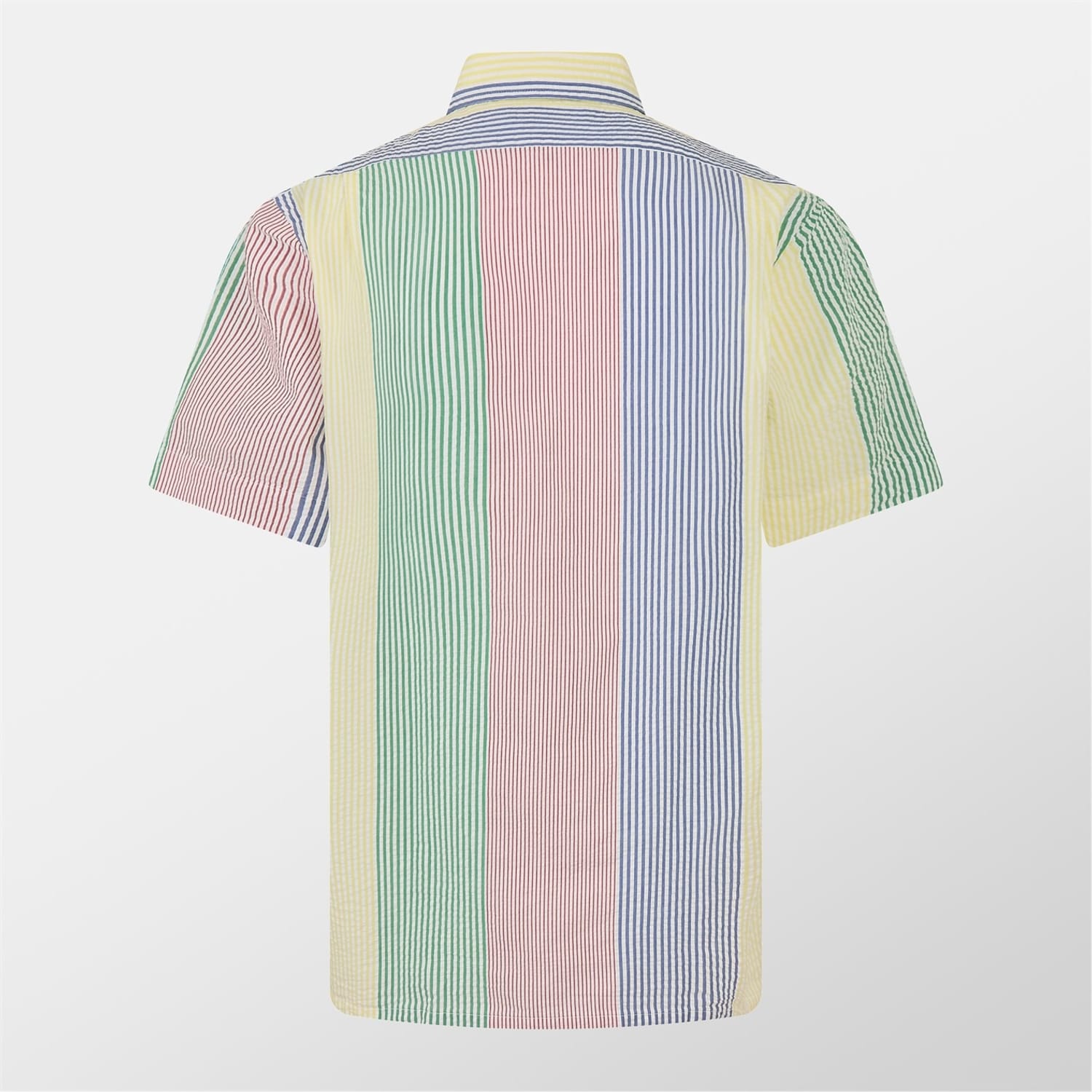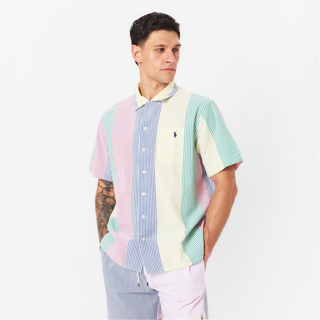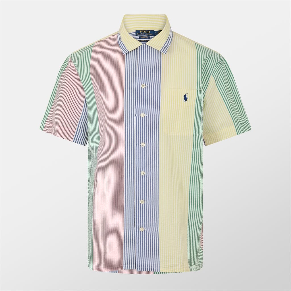 This Polo Ralph Lauren top is a stylish addition to your casual collection. Featuring a stripe pattern, it comes with short sleeves and a shirt collar. The regular fit ensures comfort, while the button-down closure adds a classic touch. Embellished with a logo and a chest pocket, this top combines functionality with a touch of elegance. -