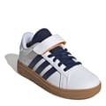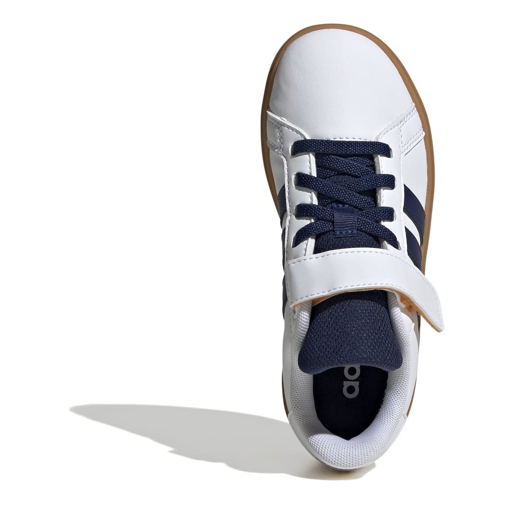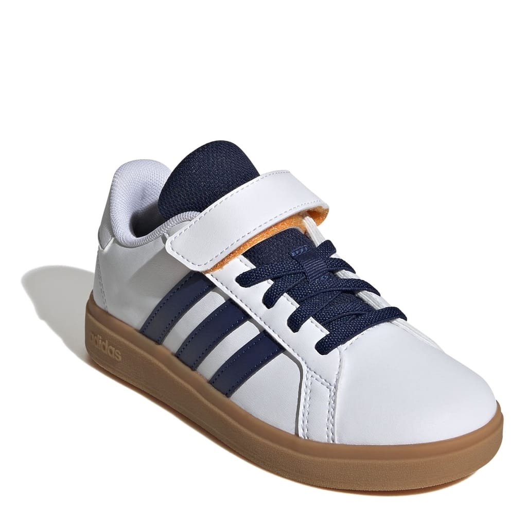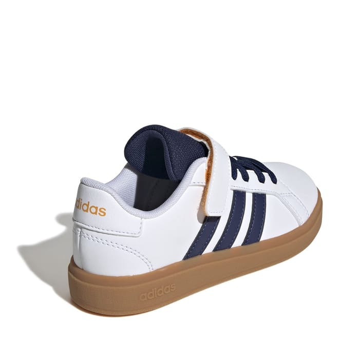 The adidas Grand Court Child Boys Trainers are a great addition to their weekend wardrobe, crafted with a low profile ankle collar, coupled with a lace closure, touch tape fastening strap and cushioning to the midsole and insole that provides all day comfort. Contrasting accents to the upper teamed with tonal stitching gives a simple but stylish look, finished off with the classic adidas three stripe branding to the side. -