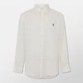 - Get ready to embrace effortless style with Polo Ralph Lauren's Linen Long Sleeve Shirt. Meticulously made from linen, this shirt boasts a lightweight, breathable feel with a tailored fit that ensures both comfort and enhances your silhouette. The button-down collar and buttoned placket add a classic touch, while the long sleeves with buttoned barrel cuffs offer adaptability and versatility. The split back yoke with a box pleat provide a comfortable fit and allows for a greater range of motion.