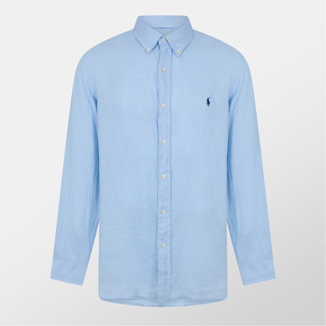 - Get ready to embrace effortless style with Polo Ralph Lauren's Linen Long Sleeve Shirt. Meticulously made from linen, this shirt boasts a lightweight, breathable feel with a tailored fit that ensures both comfort and enhances your silhouette. The button-down collar and buttoned placket add a classic touch, while the long sleeves with buttoned barrel cuffs offer adaptability and versatility. The split back yoke with a box pleat provide a comfortable fit and allows for a greater range of motion.