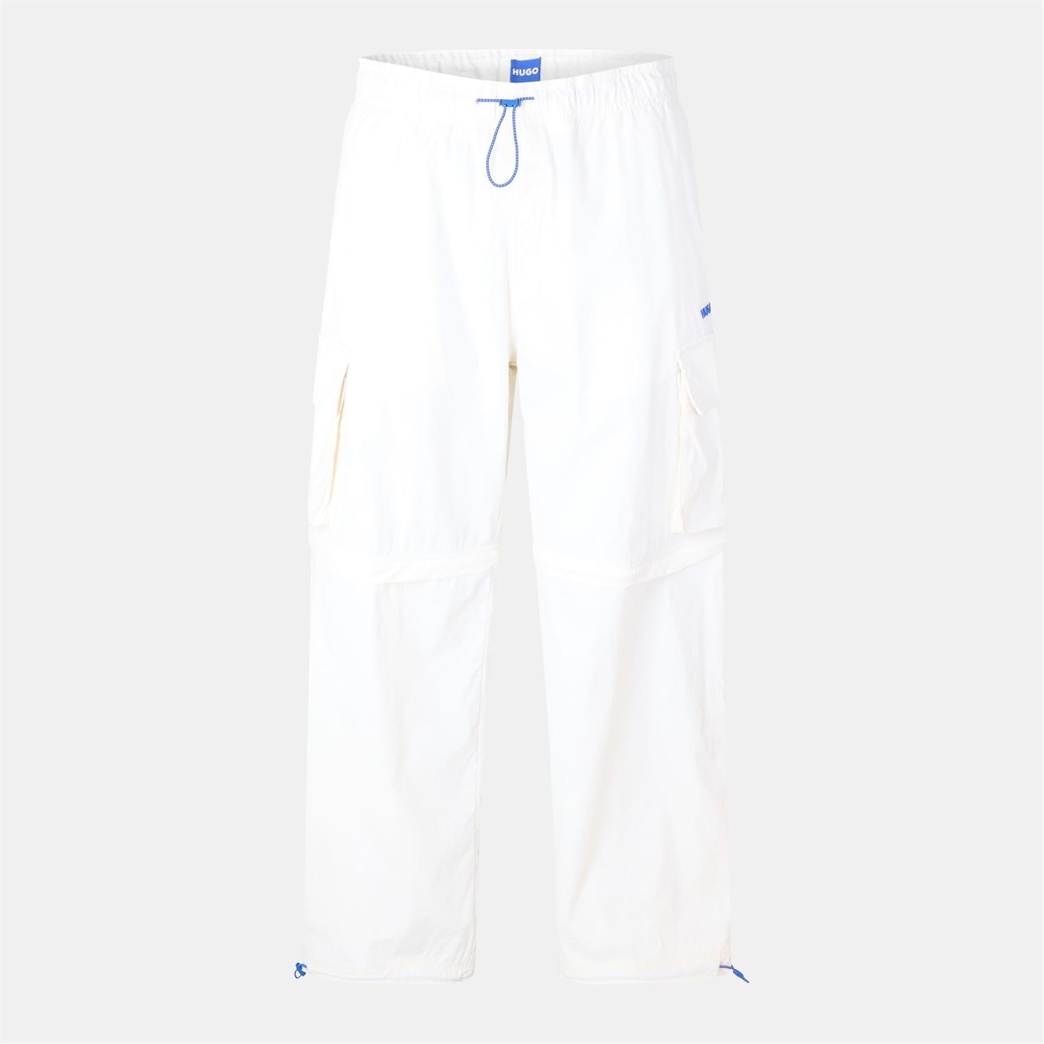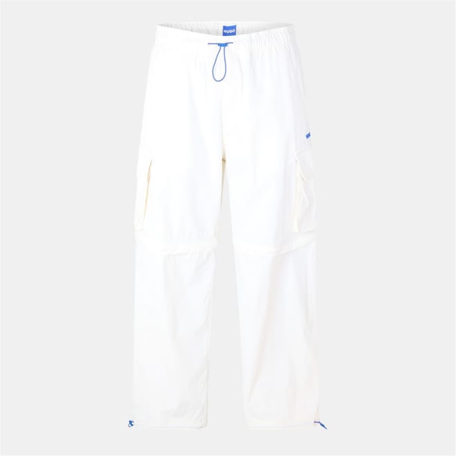 Discover Hugo's woven cargo pants, designed for both style and functionality. Featuring a drawstring closure and side pockets, these pants offer practicality and comfort. The subtle logo embellishment adds a touch of brand identity, making them a versatile addition to your wardrobe. -