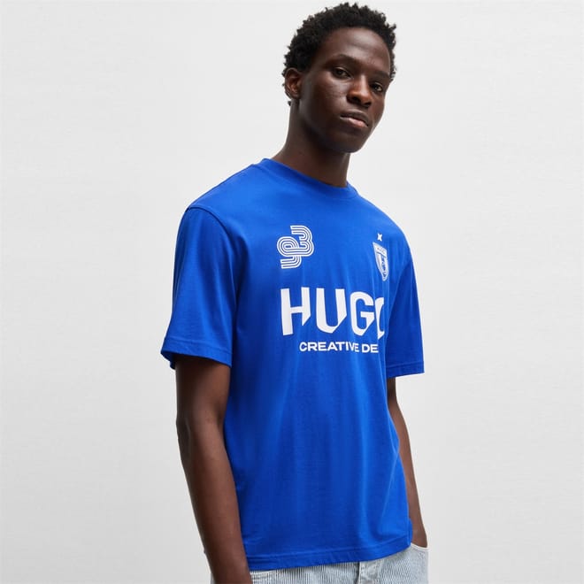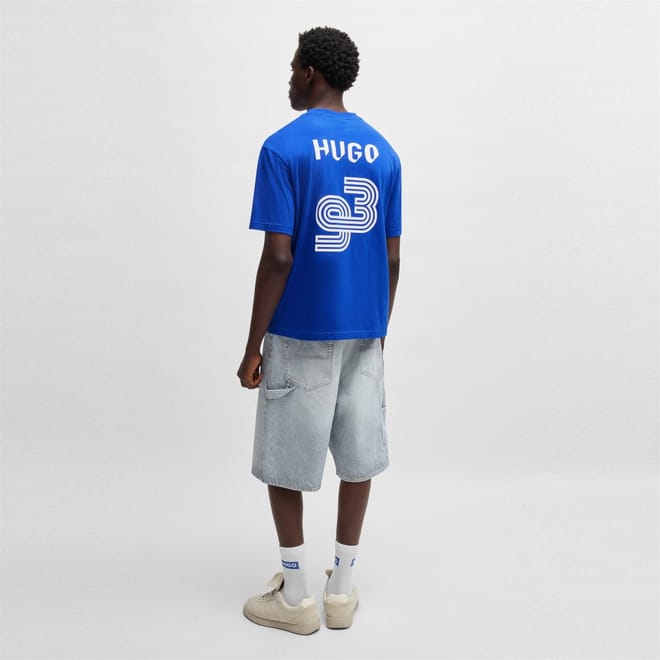This Hugo top features a regular fit and a classic crew neck. Adorned with a large genie graphic and logo, it showcases a striking graphic print. Perfect for those who appreciate bold designs, this top combines style and comfort effortlessly. -