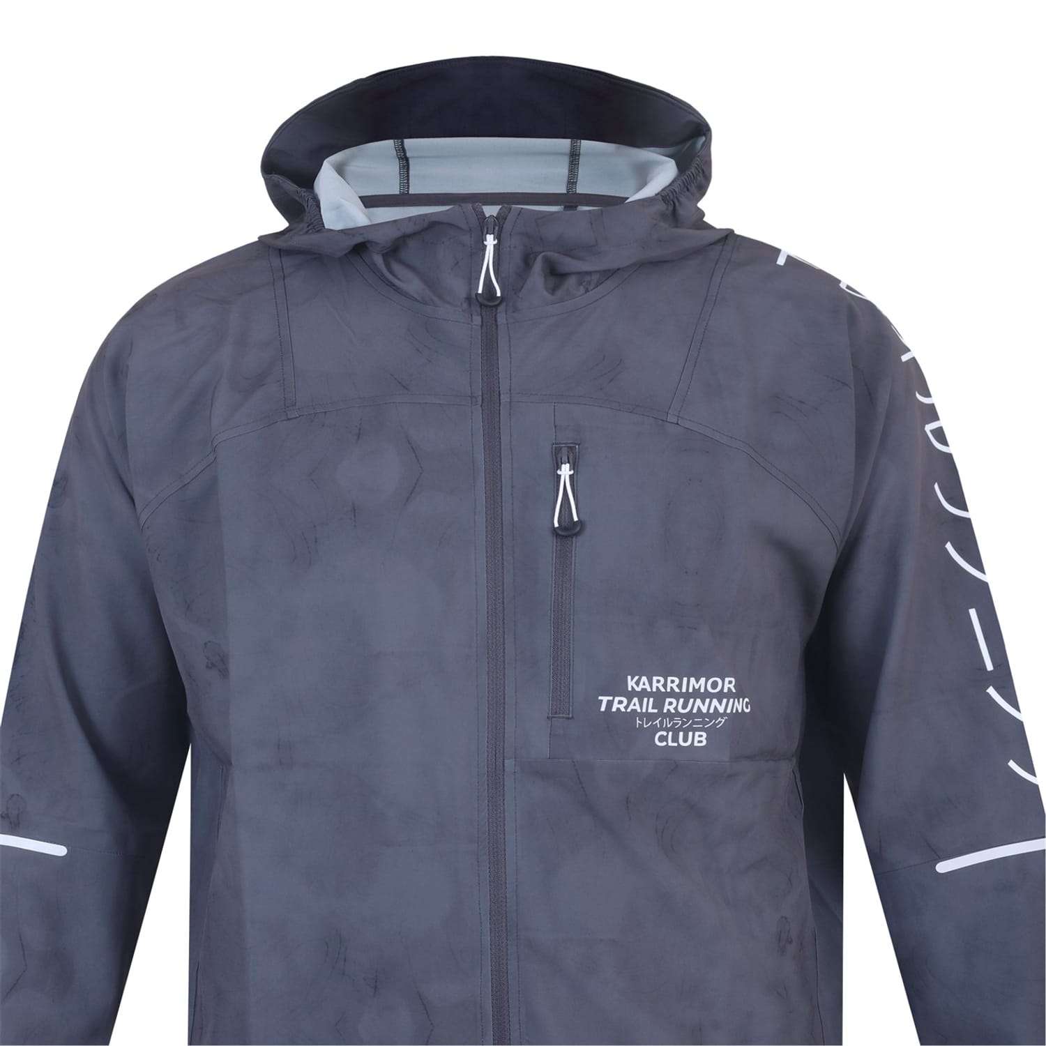 The Karrimor windbreaker is a performance jacket from the activewear collection, designed for optimal functionality. It features a hooded neckline and a zipper closure for convenience. The regular fit and raglan sleeves ensure comfort and ease of movement. The marble pattern adds a stylish touch, while the reflective ribbon and logo embellishments enhance visibility and brand identity. -