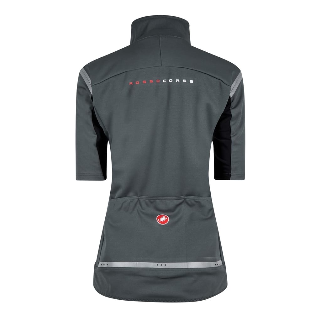 Discover the Castelli top, a perfect addition to your activewear collection. This slim fit design features a high neck and a convenient zipper closure. The solid pattern is complemented by a logo and reflective trim, ensuring both style and visibility. Ideal for those seeking a blend of functionality and modern aesthetics. -