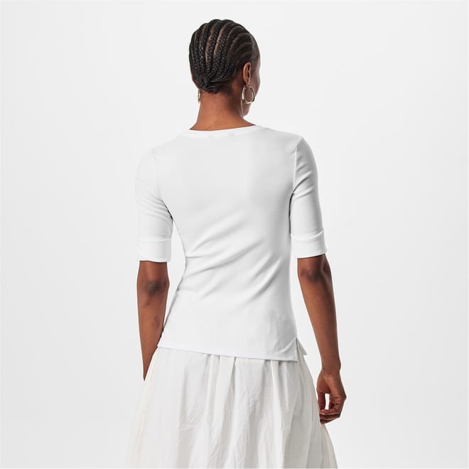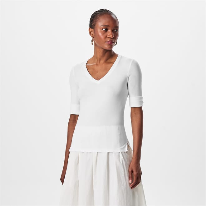 The Lauren by Ralph Lauren Judy top is a casual piece featuring a V-neck and long sleeves. Designed in a slim fit, it showcases a solid pattern with a subtle logo embellishment, adding a touch of elegance to your wardrobe. -