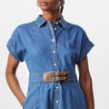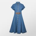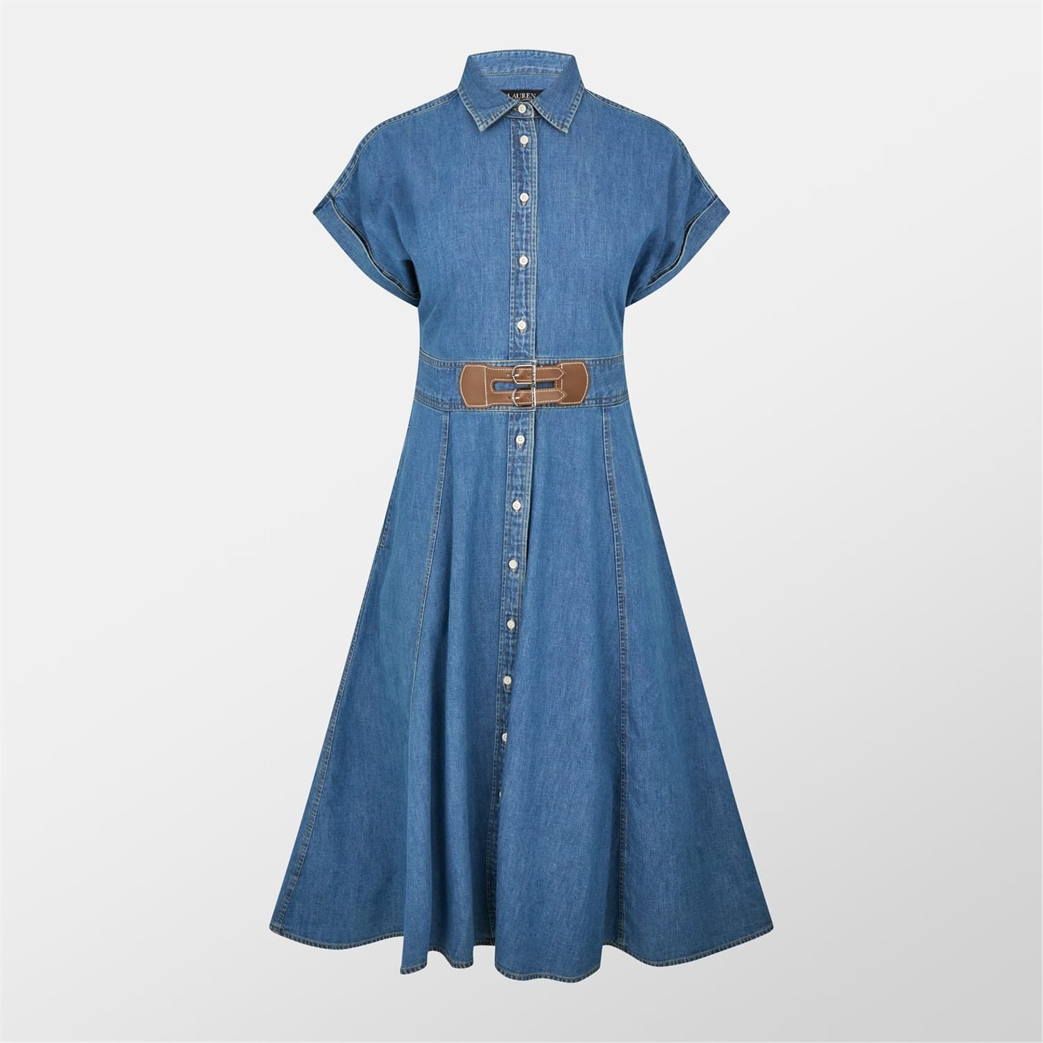 Elevate your wardrobe with Lauren By Ralph Lauren's Buckle-Trim Denim Shirtdress. Featuring logo embellished buckle tabs at the centre waist, creating a designer touch. From garden parties, to summer strolls, this midi dress is a must-have piece.