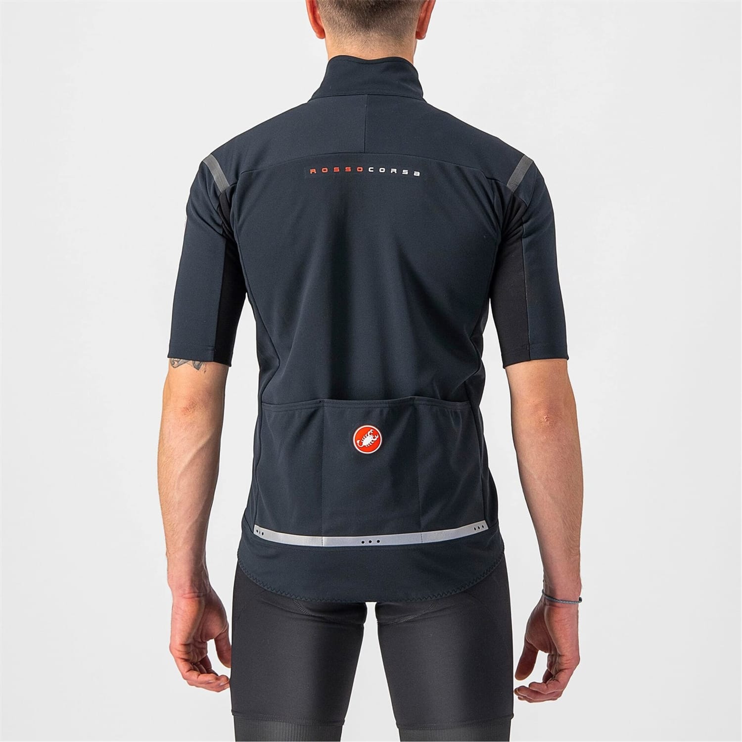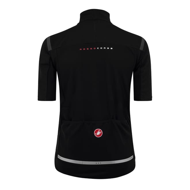 Discover the Castelli top, designed for activewear enthusiasts. This slim fit piece features a mock neck and a convenient zipper closure. The solid pattern is complemented by a logo and reflective trim, making it suitable for all seasons. Ideal for those seeking functionality and style in their wardrobe. -