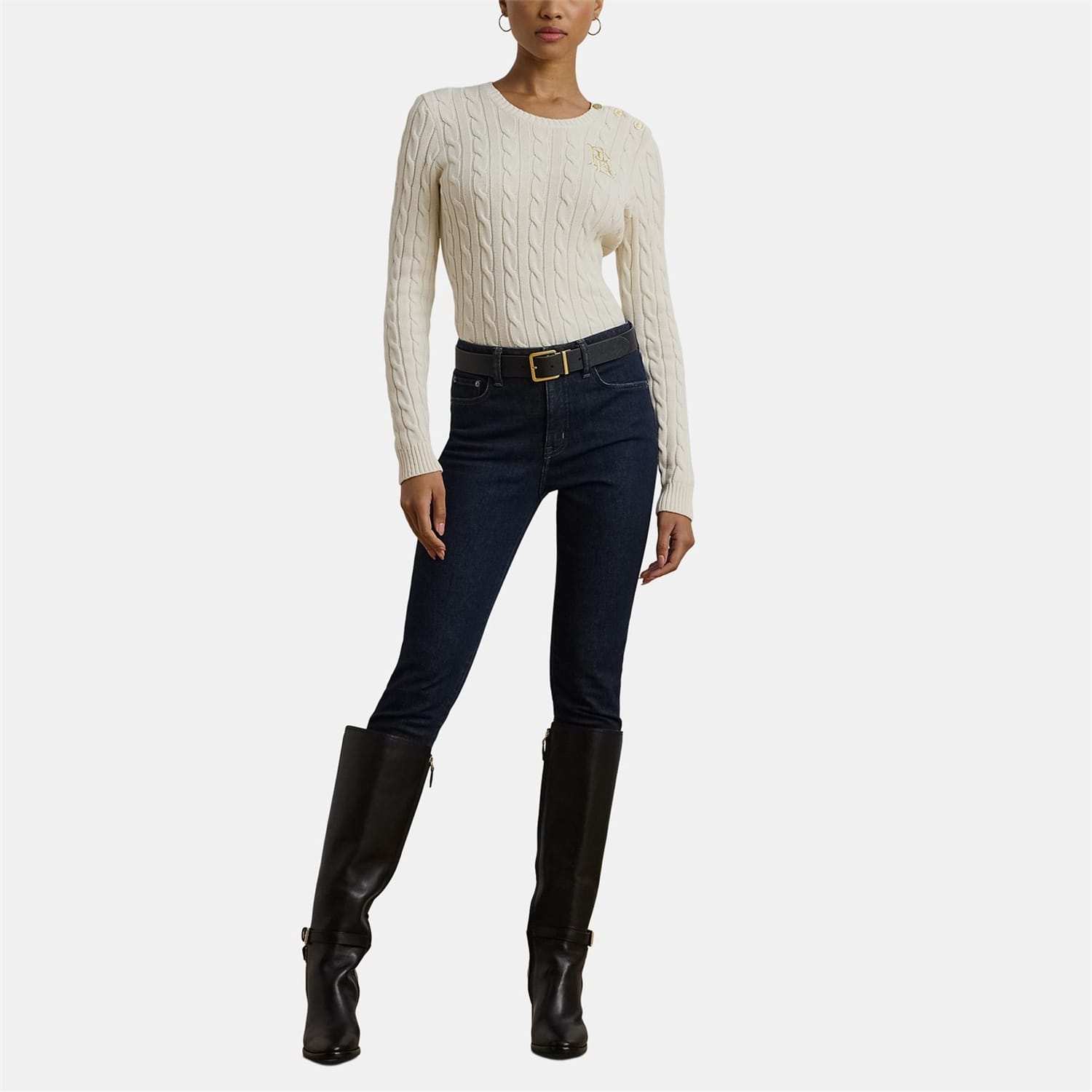 Embodying the refined country club style that defines many of the house's collections, the Lauren By Ralph Lauren Button-Trim Cable Knit Jumper is a chic and versatile staple perfect for any occasion. Whether you are looking for a smart casual staple for the office or meeting friends for brunch, this knitted sweater is destined to elevate any ensemble instantly.