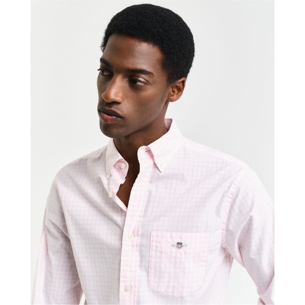 Add a timeless style to your shirt collection with our Gingham Poplin Shirt. Cut in a comfortable, regular fit and detailed with our GANT shield graphic at the chest pocket, this shirt is sure to elevate any business-casual look. -