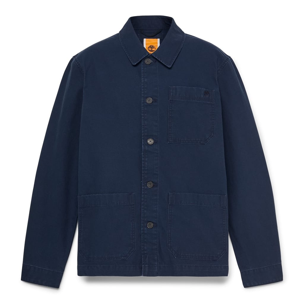 This Timberland field jacket features a regular fit with a shirt collar and a straight hem. The jacket is designed with a wash pattern and includes practical embellishments such as pockets and a chest pocket. It has a button closure, offering both style and functionality. -