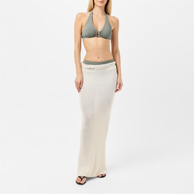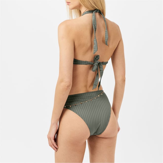 Discover the Chelsea Peers swimwear collection with this stylish two-piece set. Featuring a triangle bikini top with a tie closure, this swimwear is perfect for both swimming and beach outings. The charming embellishments add a touch of elegance to your look, making it a must-have for your next seaside adventure. -