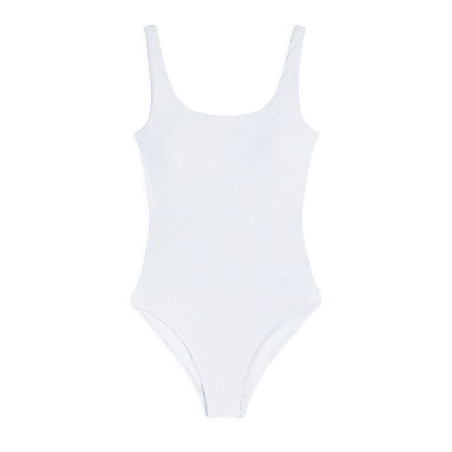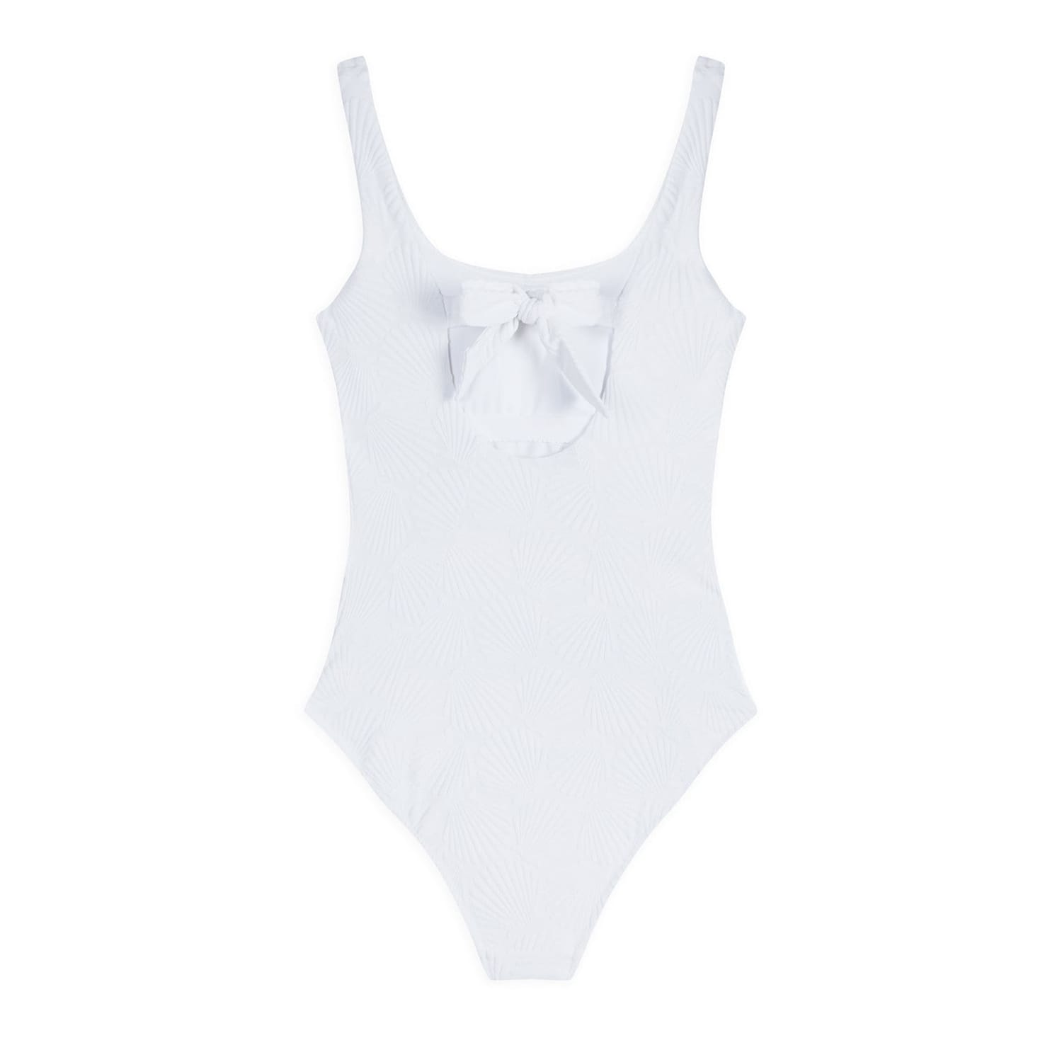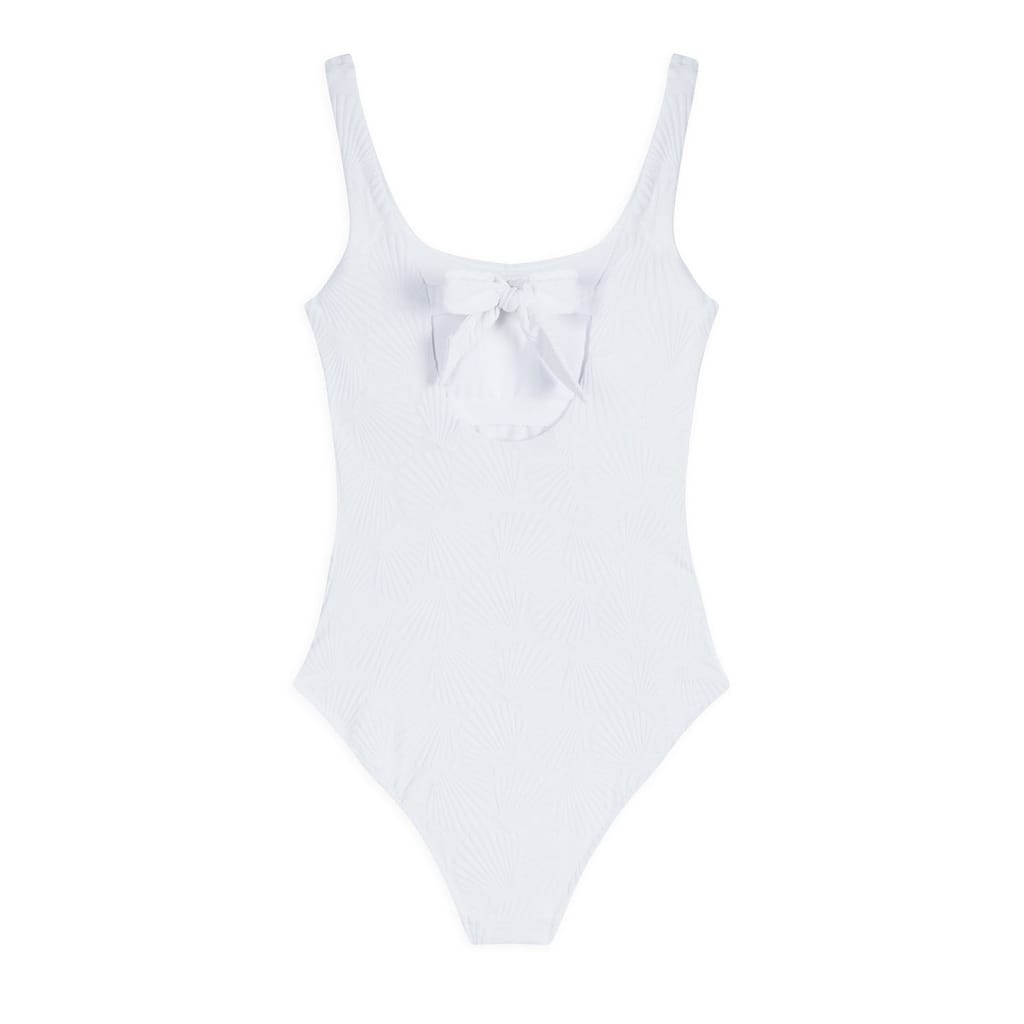 Discover the Chelsea Peers one-piece swimwear, a textured bandeau swimsuit perfect for swimming. Featuring a stylish tie-back closure, this piece combines elegance and functionality, making it an ideal choice for your swimwear collection. -
