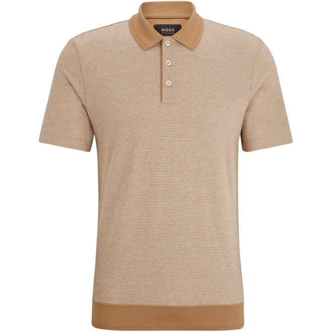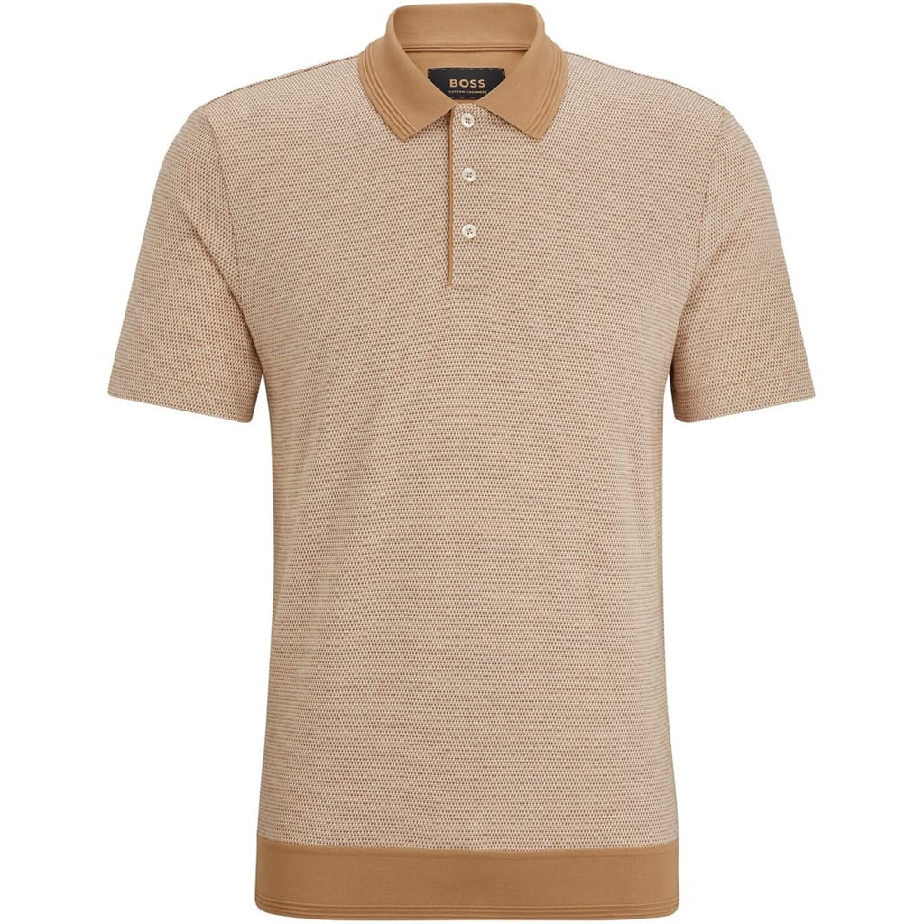 This Boss polo shirt is a refined choice for your wardrobe. Featuring a polo collar and ribbed cuffs, it offers a classic style. The shirt has a short sleeve design with a regular fit, providing comfort and ease of movement. Completed with a button closure, this top is perfect for casual occasions. -