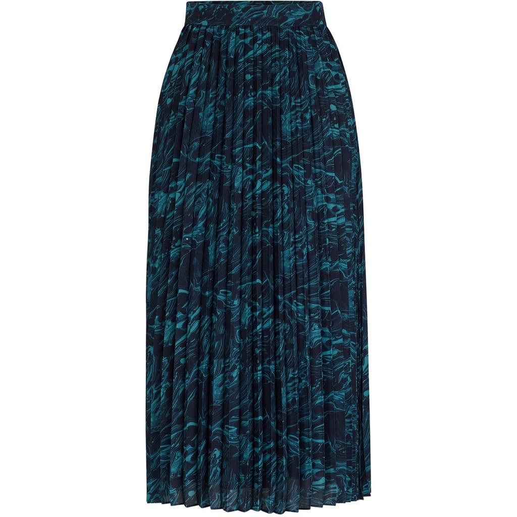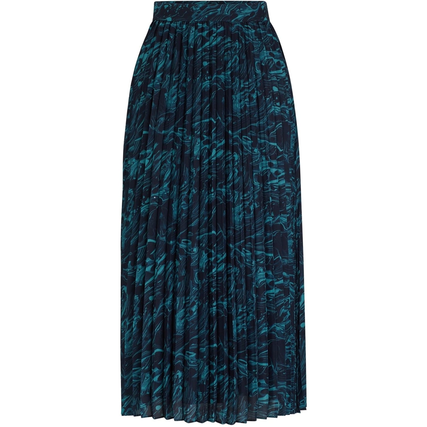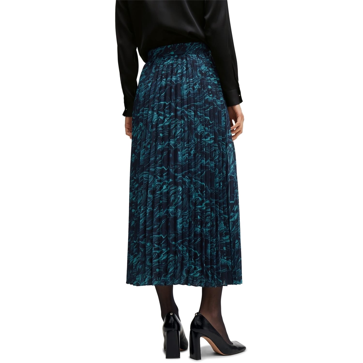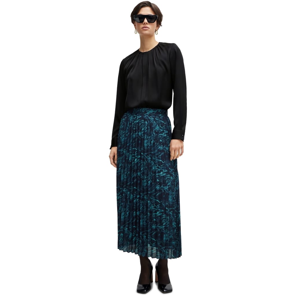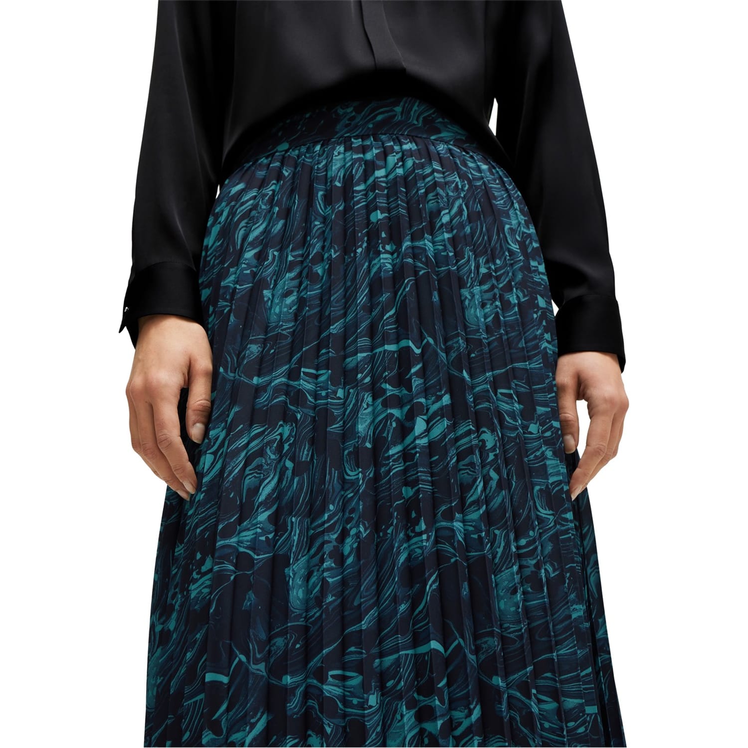 This Boss midi skirt is a perfect blend of style and comfort. Featuring an A-line silhouette, it offers a relaxed fit that ensures ease of movement. The skirt is adorned with pleats and showcases an abstract marble pattern, adding a touch of elegance to your casual collection. -