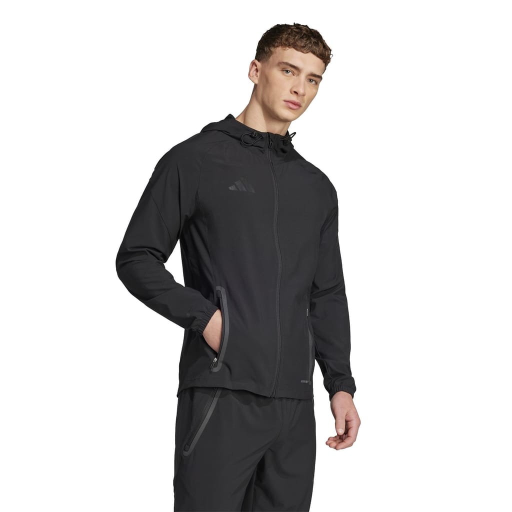 Designed for footballers on the go, this Tiro 25 Competition jacket from adidas keeps you comfortable on short hops and long treks. The slim fit flexes with your movements so you're always where you need to be. AEROREADY manages moisture to leave distractions in your wake. A secure space for travel essentials like phones and passports, zip pockets add extra utility.