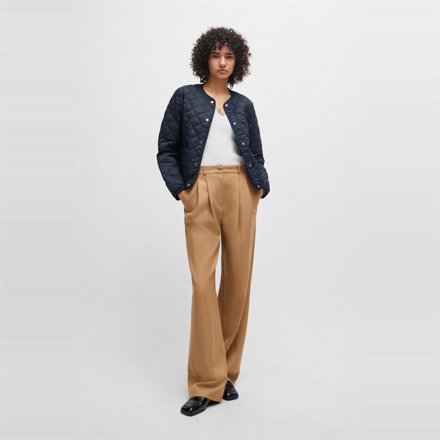 Elevate your outerwear collection with this Boss jacket, featuring a quilted design and ribbed pattern for added texture. This short, regular fit jacket is equipped with a snap button closure and practical pockets, offering both style and functionality. Perfect for layering, this piece is a timeless addition to any wardrobe. -