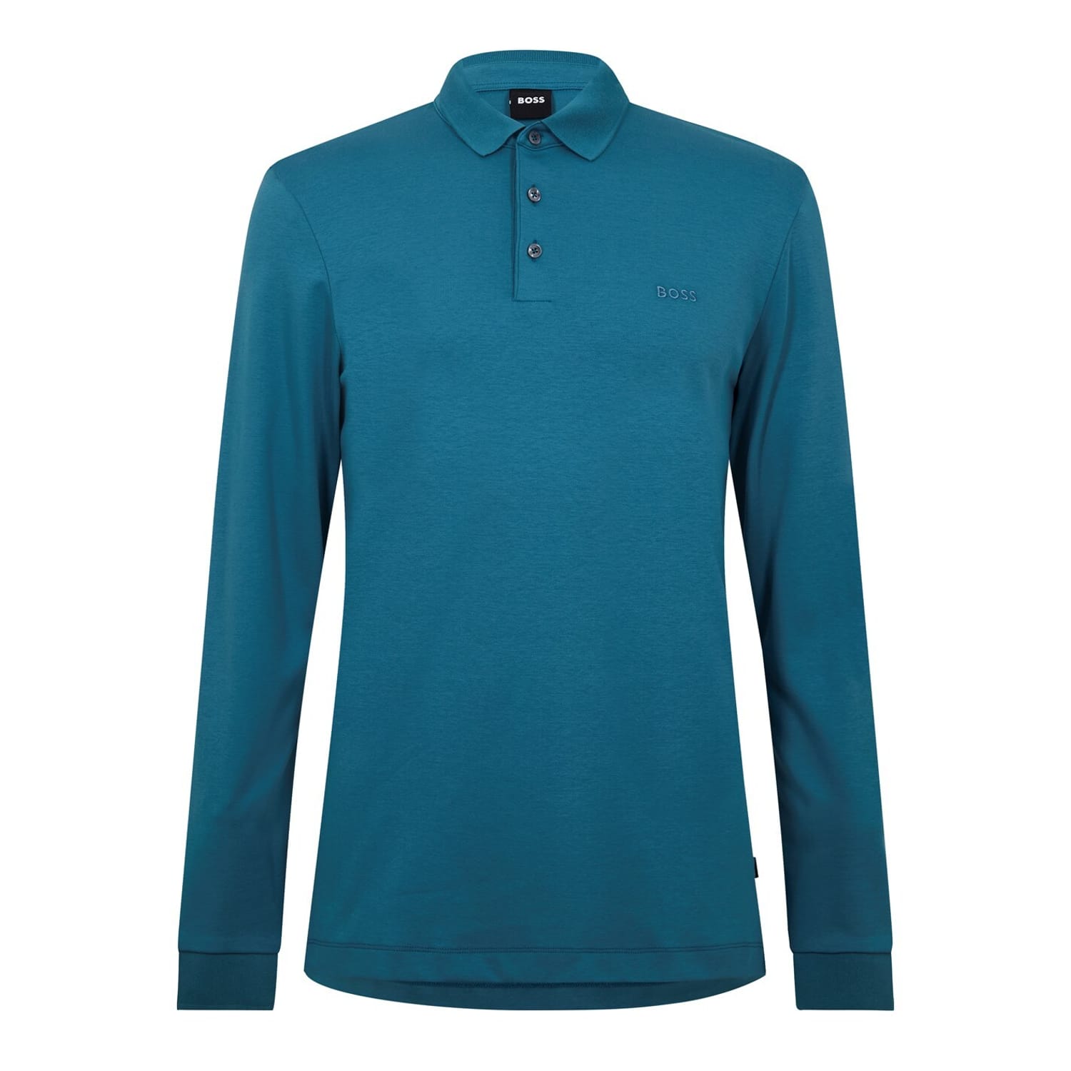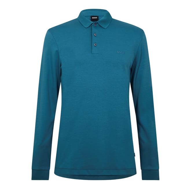 This Boss polo shirt features a classic polo collar and ribbed cuffs, offering a regular fit with long sleeves. The button closure adds a refined touch to this timeless top, perfect for any wardrobe. -