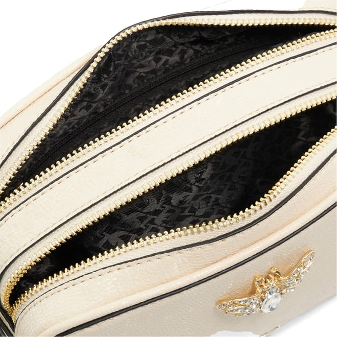 Discover the Dune London cross body bag, a stylish accessory featuring a secure zipper closure. This elegant piece is adorned with a logo and chain embellishments, adding a touch of sophistication. The shoulder handle ensures comfortable wear, making it a versatile choice for any occasion. -