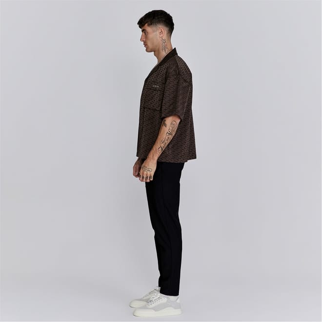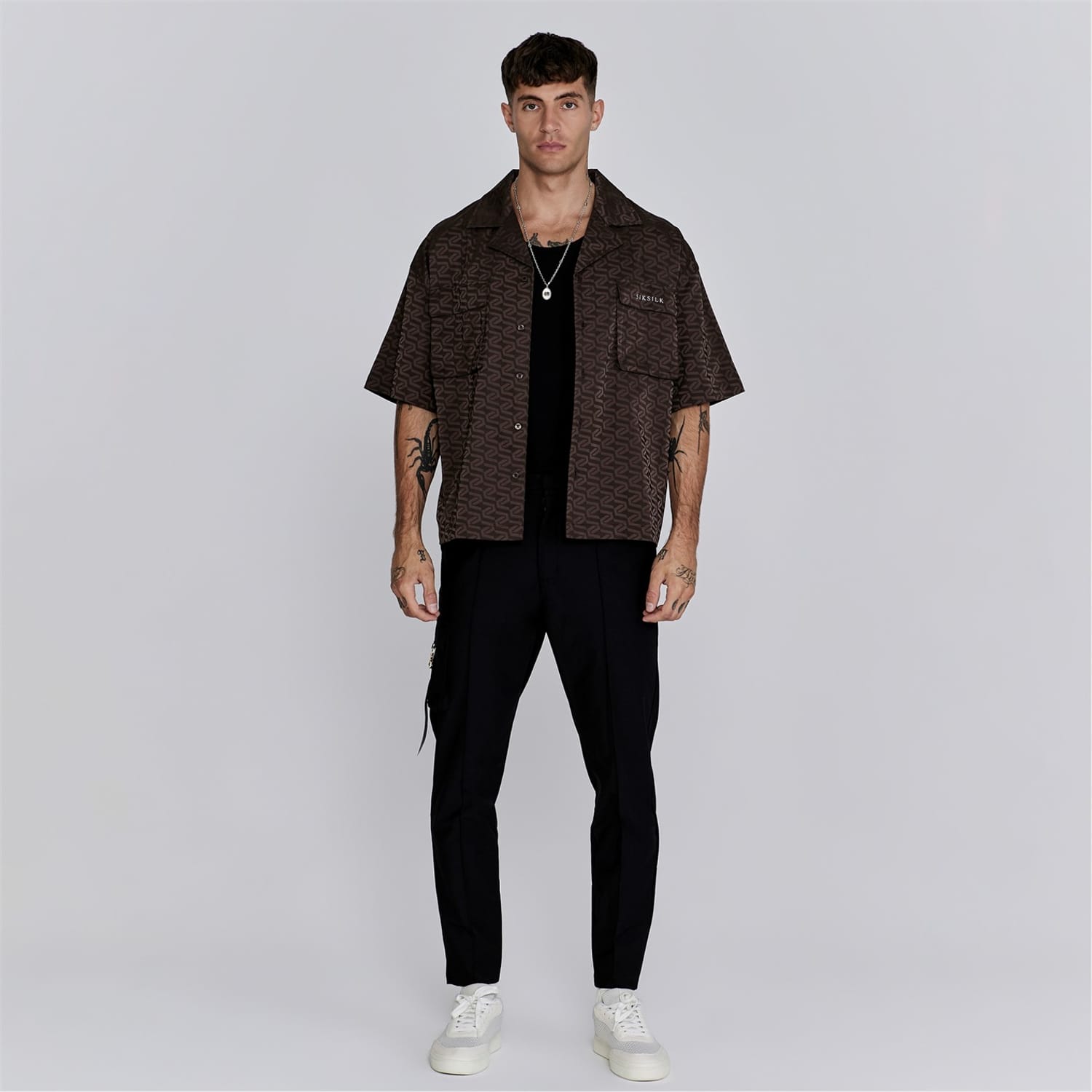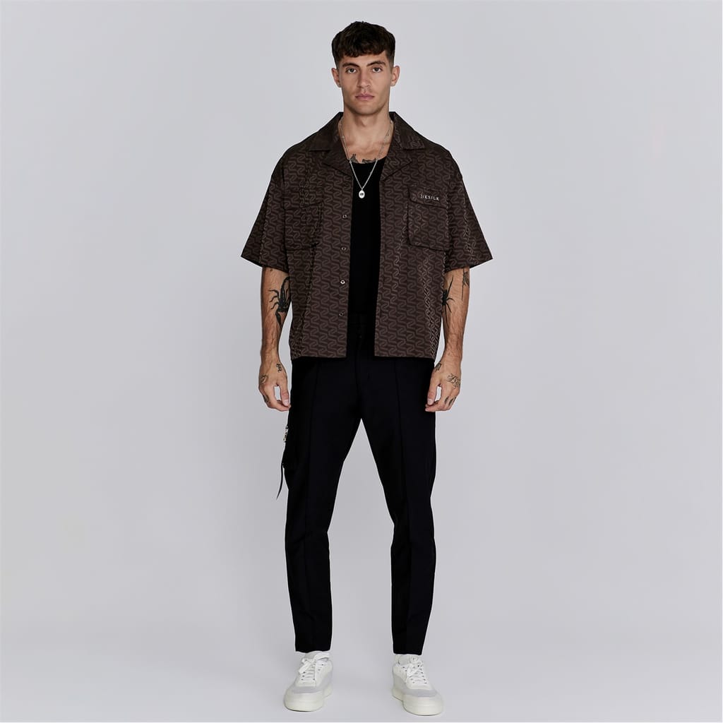 This Siksilk top is a casual essential, featuring a relaxed fit and short sleeves. The geometric pattern adds a modern touch, while the button closure ensures a classic look. A pocket and logo embellishment complete the design, making it a versatile addition to your wardrobe. -