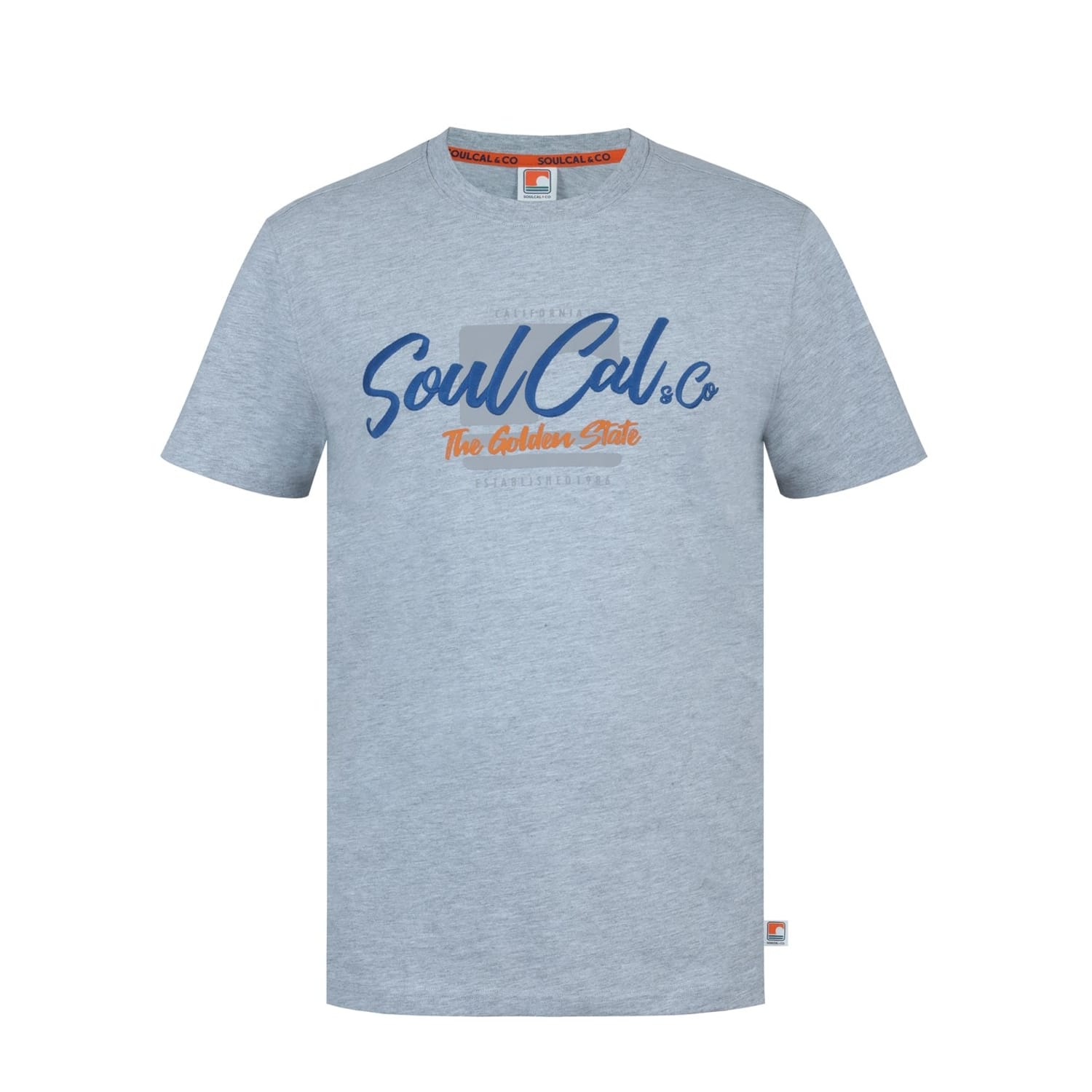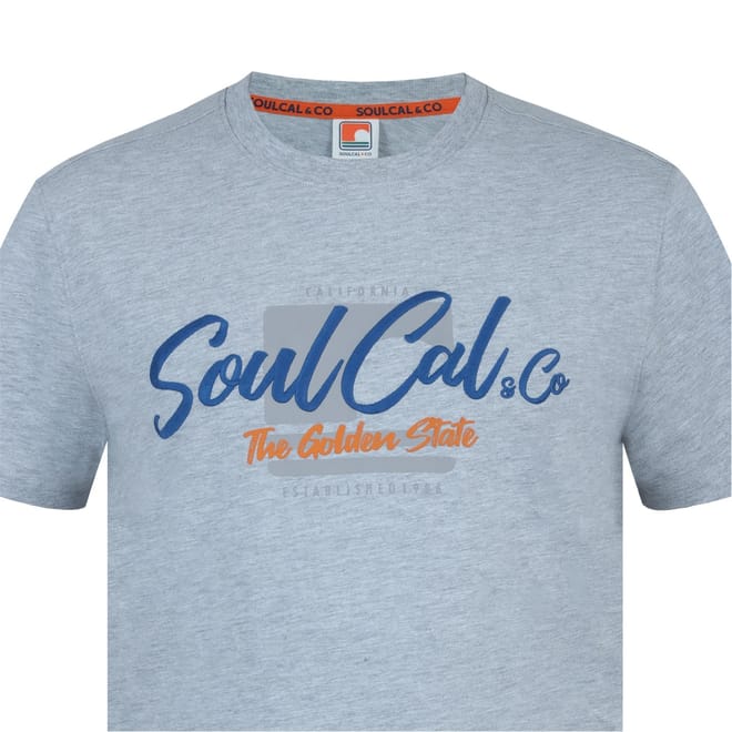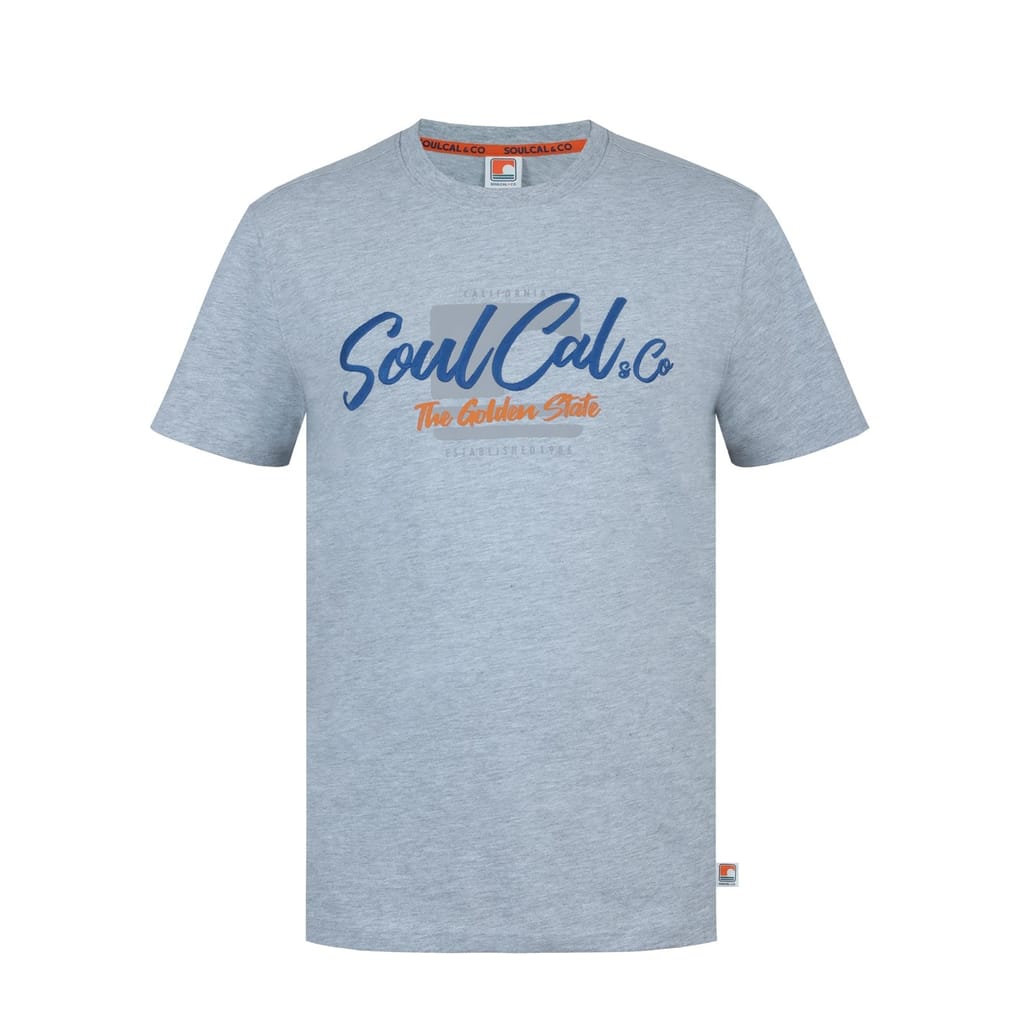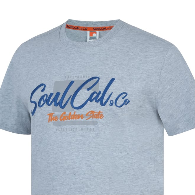 This Soulcal top is a casual essential featuring a regular fit and short sleeves. The crew neck design is adorned with a graphic print, showcasing a large genie and lettering. A logo embellishment adds a distinctive touch, making it a standout piece in any wardrobe. -