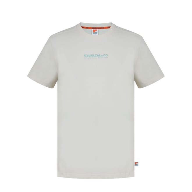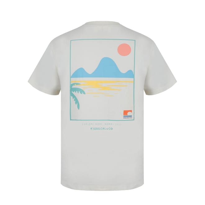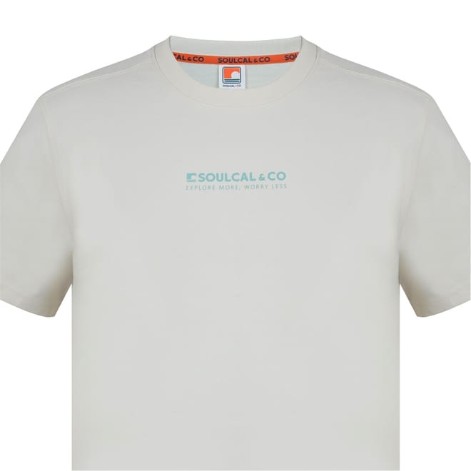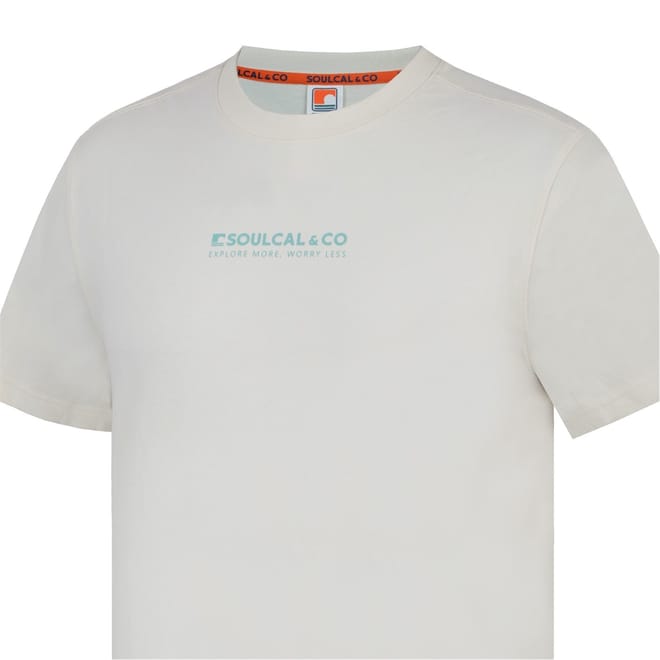 This Soulcal top from the casual collection features a regular fit and short sleeves. It showcases a crew neck and a striking graphic print with a geographic theme. The design is completed with a logo embellishment, adding a distinctive touch to this stylish piece. -