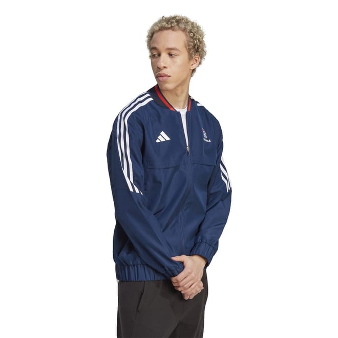 Cheer on the France national team in handball style, this adidas France Handball Anthem Jacket is the one players pull on before they head onto the court. It'll keep you warm on the sidelines or in the stands thanks to its durable woven fabric, with a federation badge on the chest that broadcasts your support loud and clear.