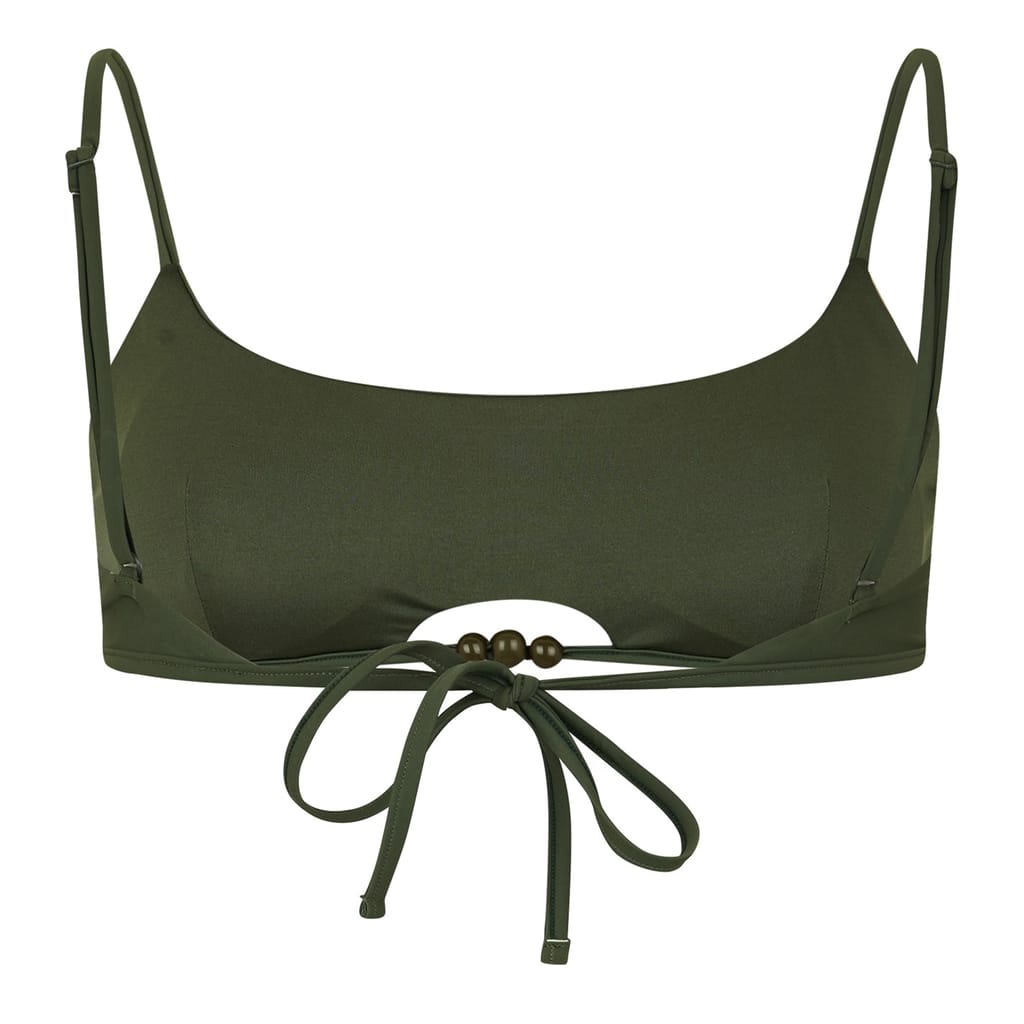 This Jack Wills cropped top is perfect for summer with its solid pattern and scoop neck design. Featuring a sleeveless style with spaghetti straps, it is adorned with bead embellishments for a touch of elegance. The tie-back closure adds a unique detail, making it an ideal choice for beach and swimming collections. -