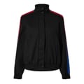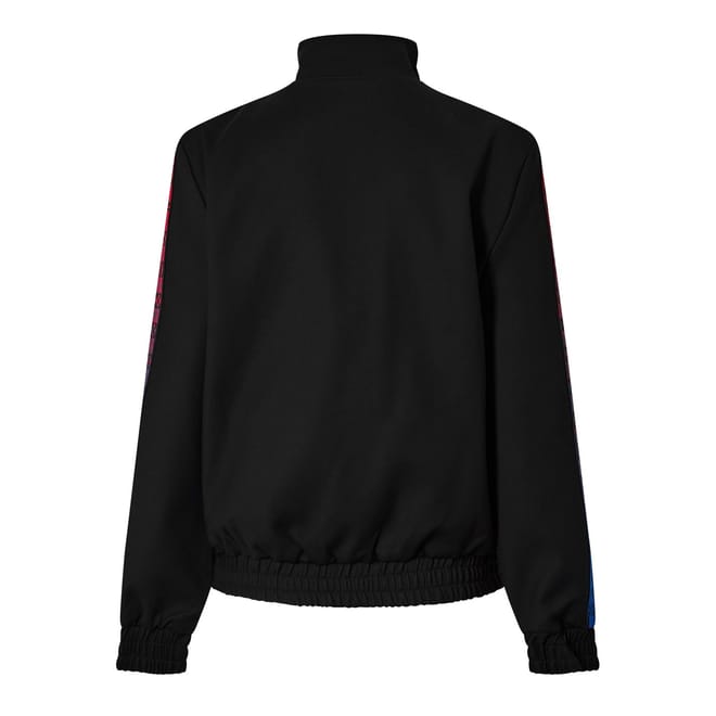 This Off-White athletic track top is designed for sports enthusiasts. It features a high collar and long sleeves with elasticated cuffs for added comfort. The snap button closure ensures a secure fit, while the regular fit allows for easy movement. The top stands out with its all-over logo pattern, making it a stylish addition to your athletic wardrobe. -