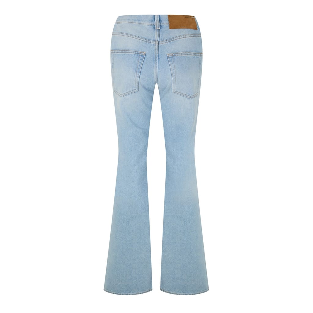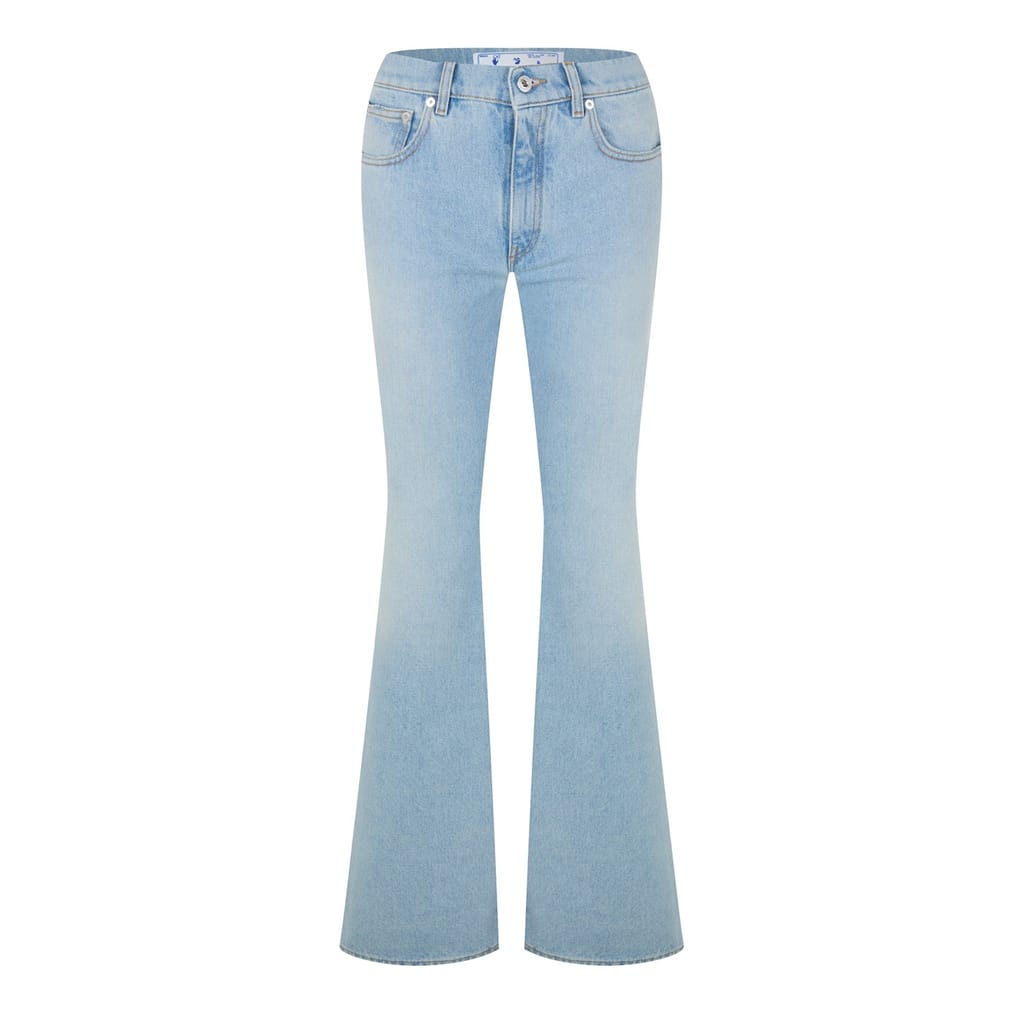 Introduce your little one to style with Off White's baby jeans. Featuring a zip fly and button closure, these jeans offer a comfortable fit with a trendy flare leg cut. The iconic logo embellishment adds a touch of brand recognition, making these jeans a fashionable choice for your baby's wardrobe. -