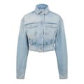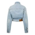 This Off White denim jacket for babies features a classic shirt collar and a snap button closure. Crafted with a solid pattern, it offers a baggy fit and is designed in a short length. The straight hem adds a neat finish, while practical pockets provide added functionality. -