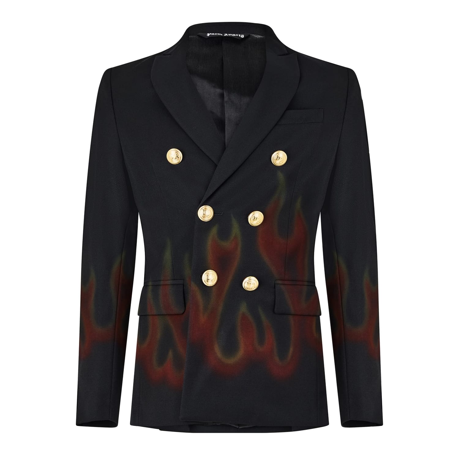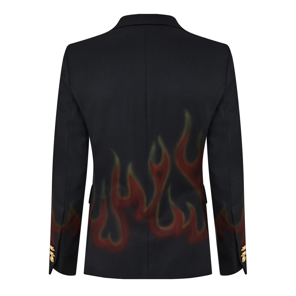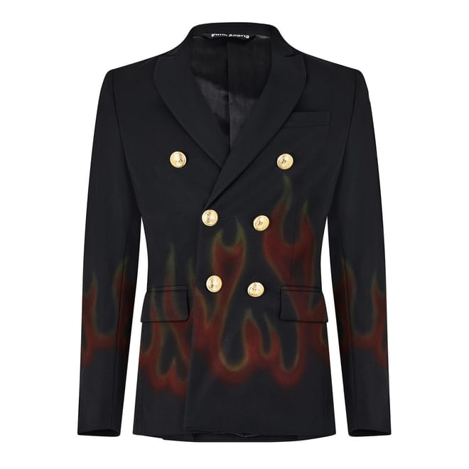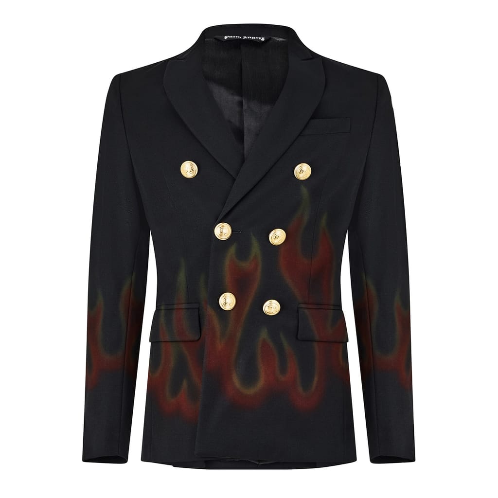 Elevate your workwear wardrobe with the Palm Angels blazer. This jacket features a lapel collar, graphic print with flame design, and regular fit. The button closure adds a classic touch, while front pockets provide functionality. Perfect for making a bold statement in any professional setting. -