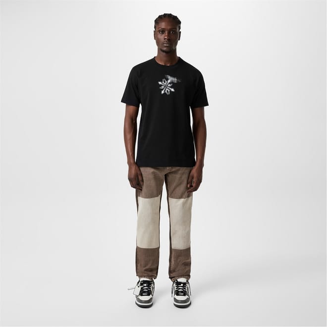 Discover the Off White top, featuring a slim fit and a crew neck design. This piece showcases a striking graphic print, complemented by the brand's iconic logo embellishment. Perfect for those who appreciate contemporary style with a touch of boldness. -