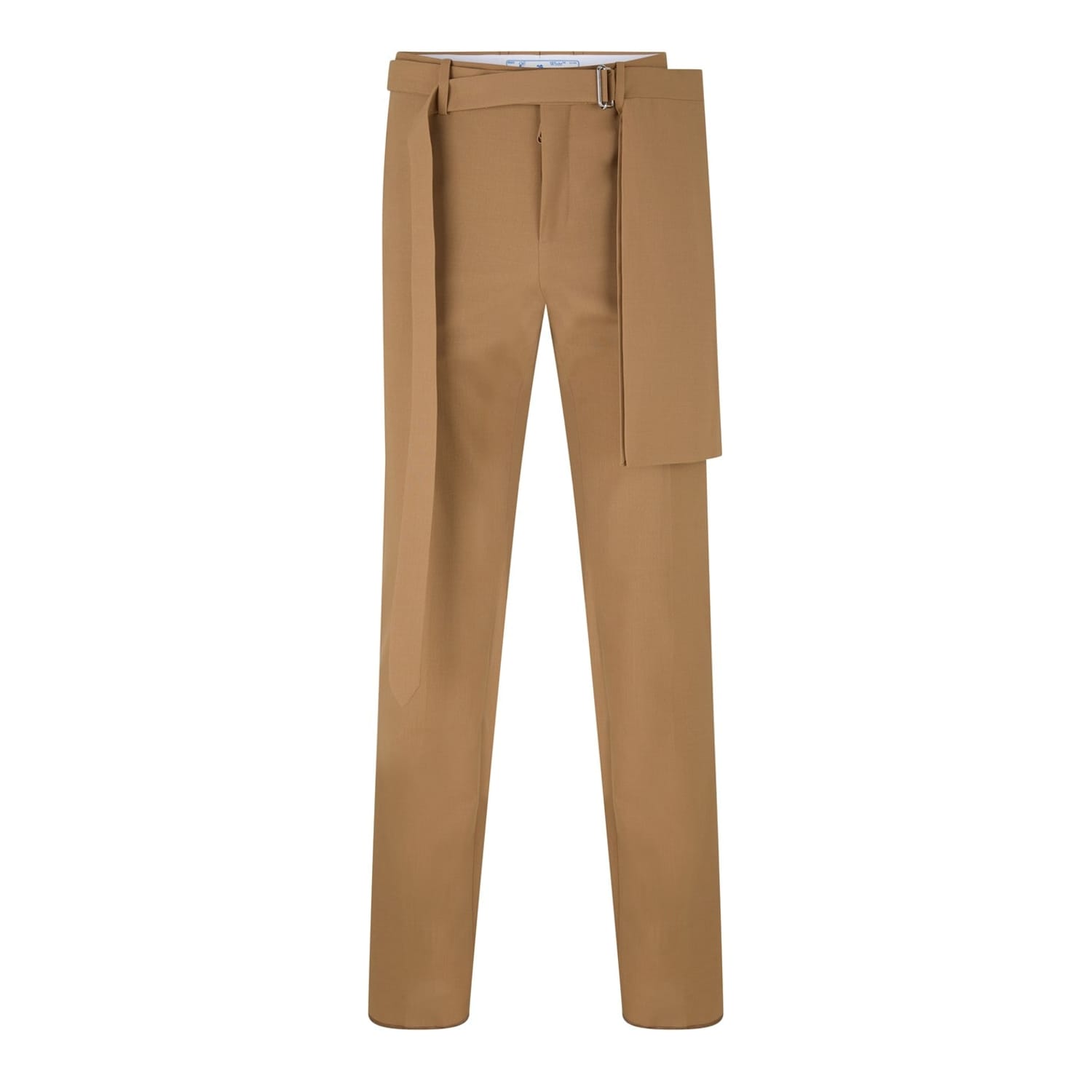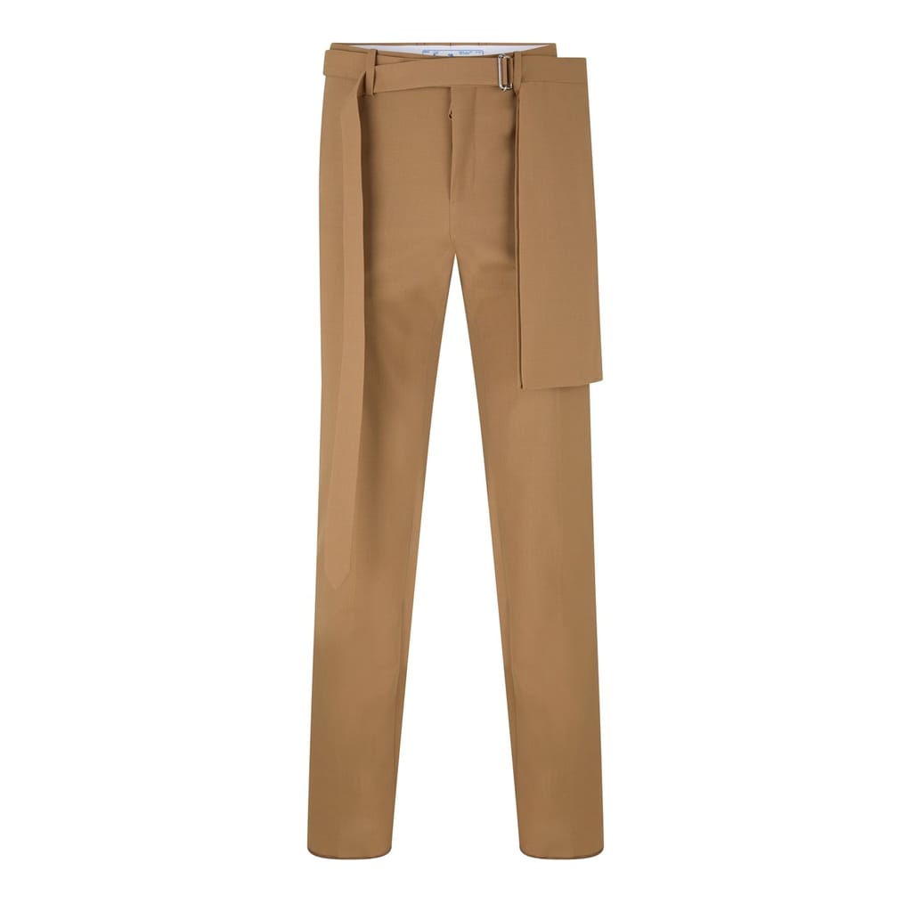 Discover Off White trousers, designed with a slim fit for a sleek silhouette. These pants feature a belt closure, ensuring a secure and adjustable fit. Perfect for those who appreciate contemporary style with a touch of sophistication. -