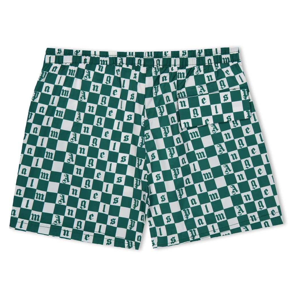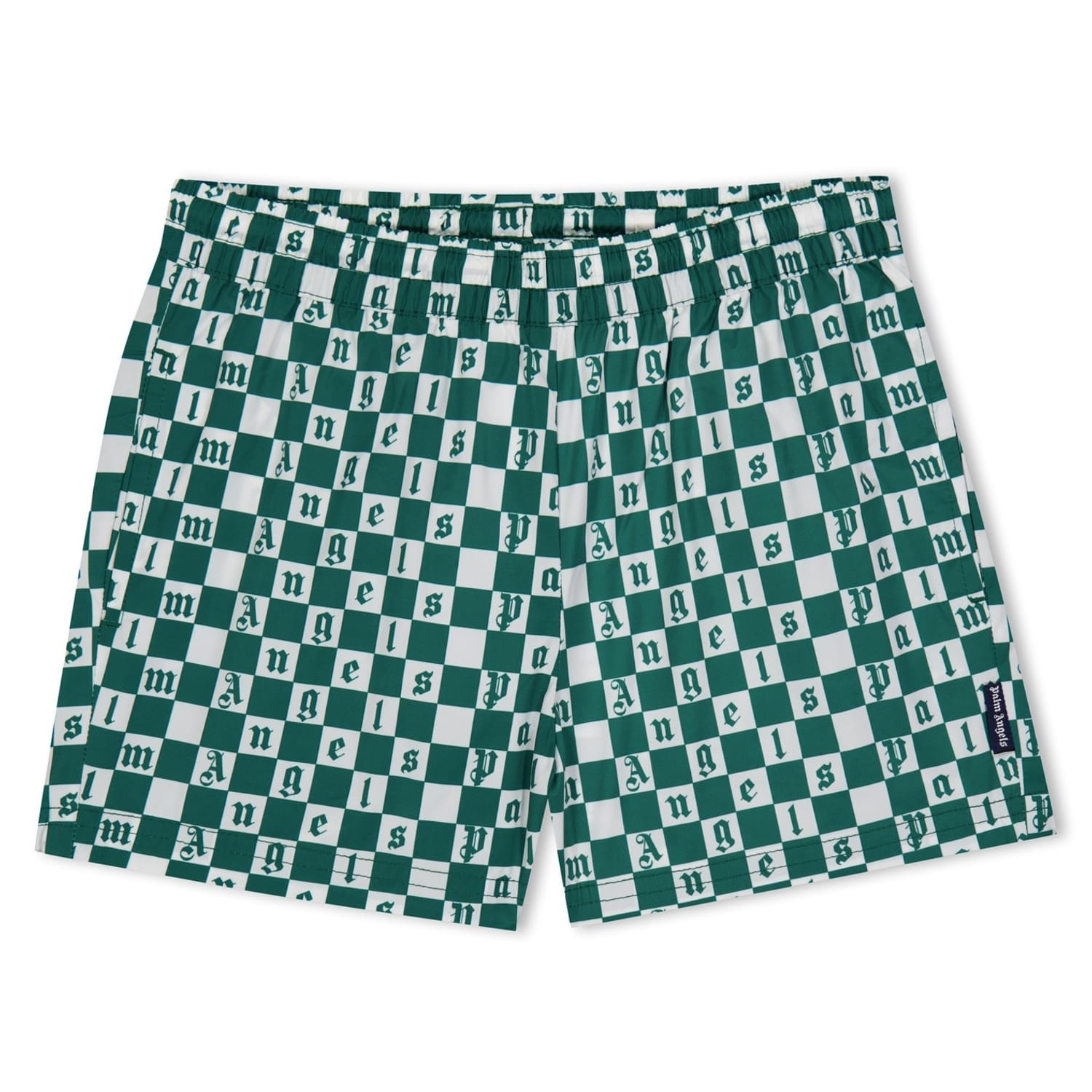 Dive into style with Palm Angels swimwear. This swim bottom features a striking checkerboard pattern, complemented by distinctive lettering graphics. Perfect for making a statement at the beach or poolside. -