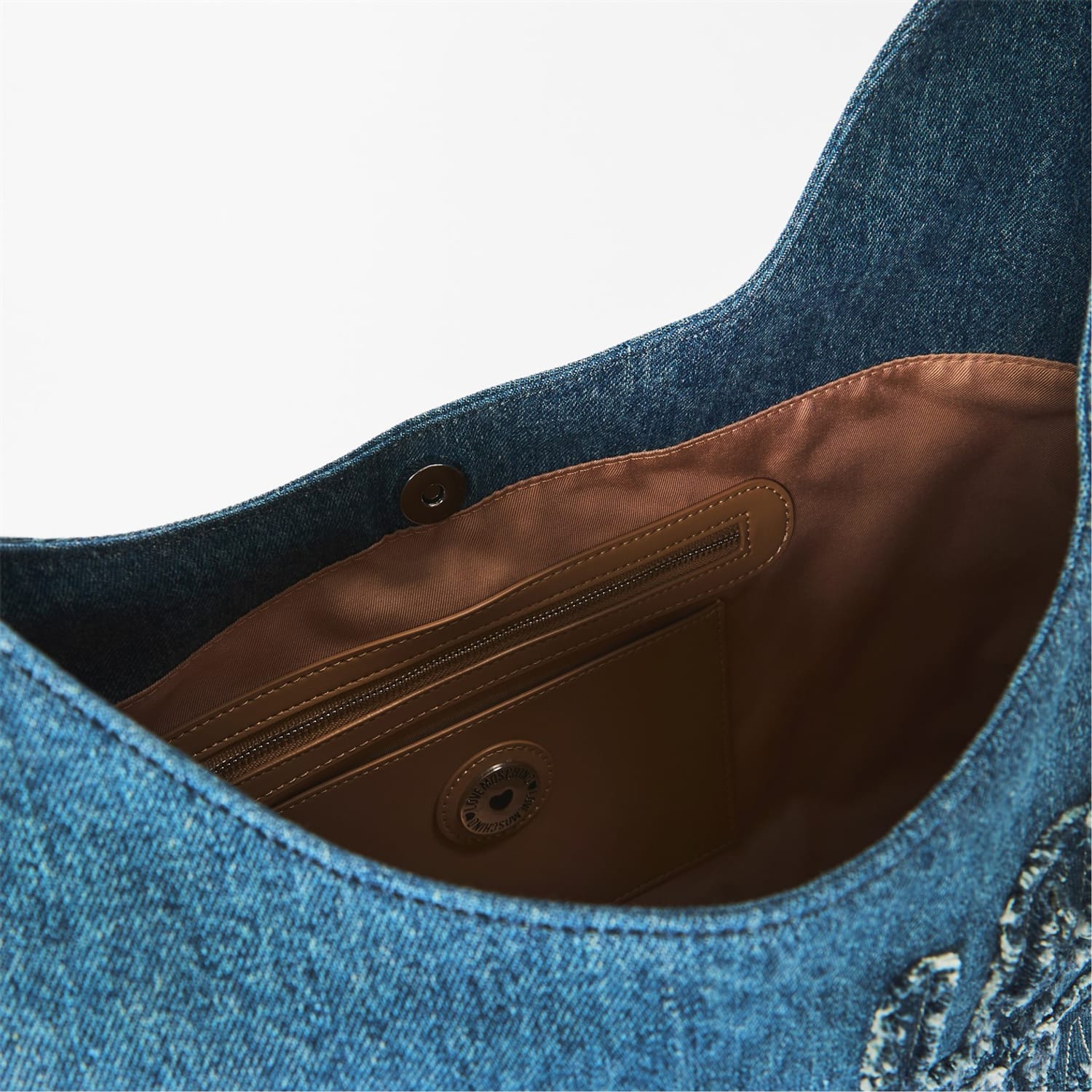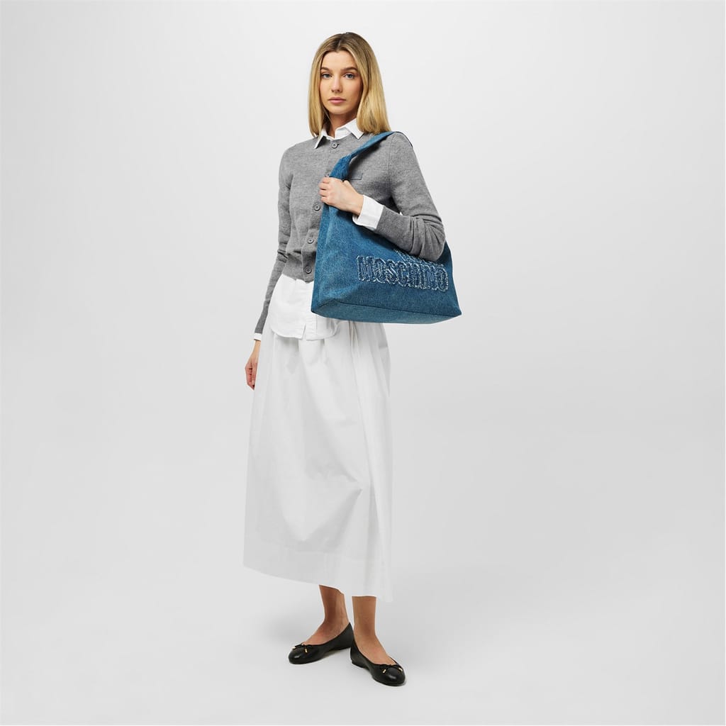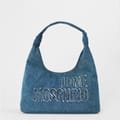 Discover the Love Moschino hobo bag, a stylish addition to your collection. This bag features a shoulder handle for comfortable carrying. The design is enhanced with embroidered embellishments and distinctive lettering graphics, showcasing the brand's logo. Perfect for those who appreciate both fashion and functionality. -
