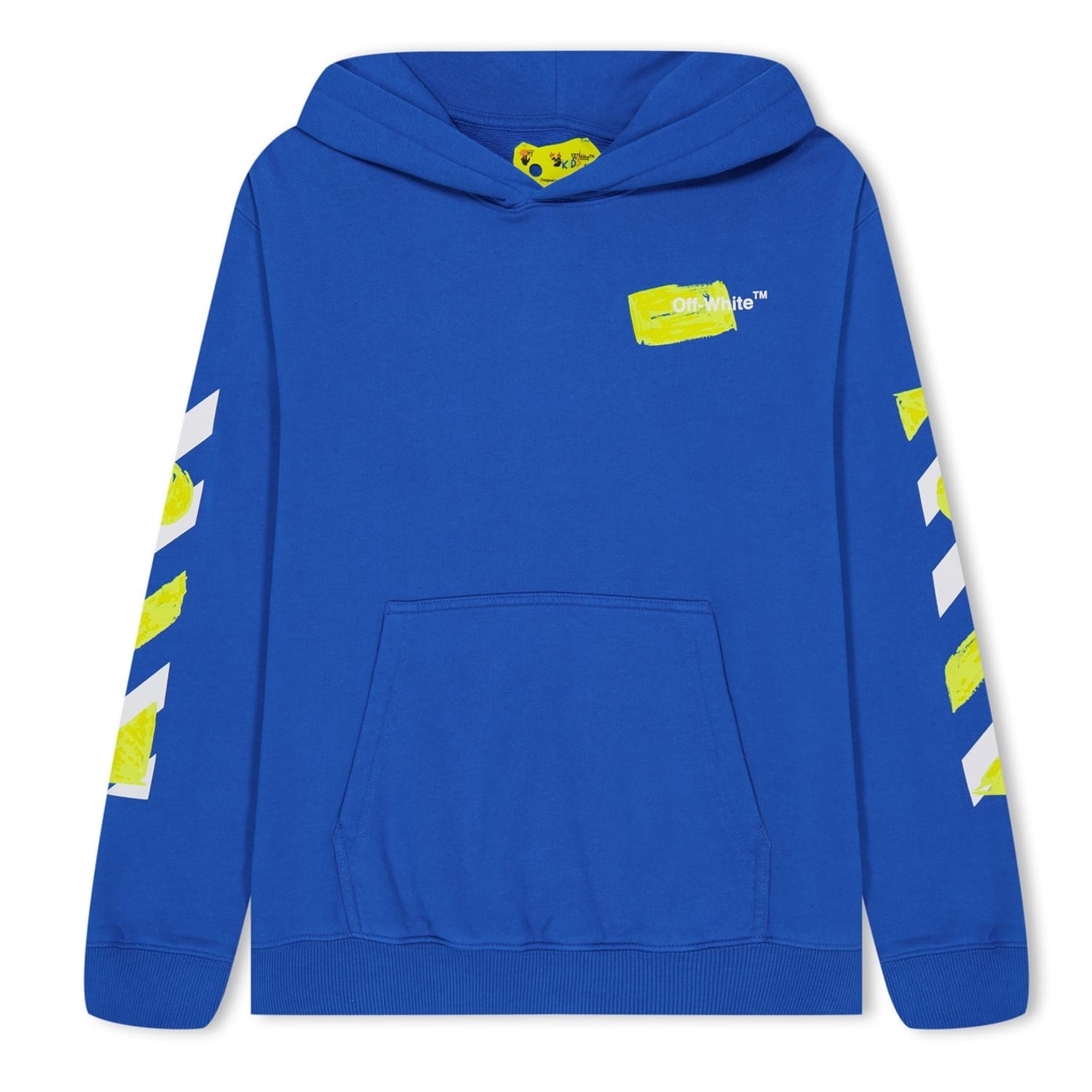 This Off White top is a casual staple featuring a hood and a drawstring closure. The long sleeves with ribbed cuffs and regular fit ensure comfort and style. Adorned with a graphic print and logo embellishment, this top is perfect for a laid-back look. -