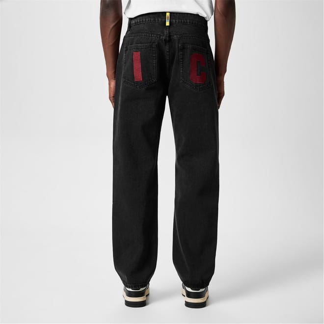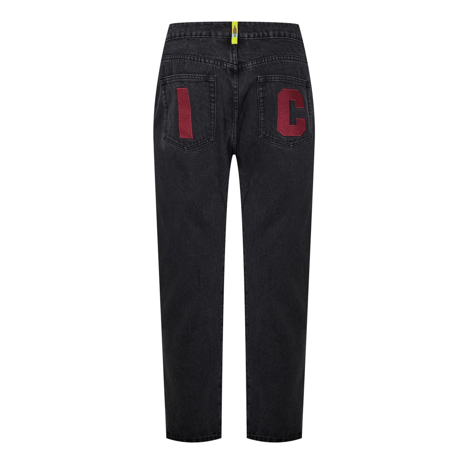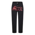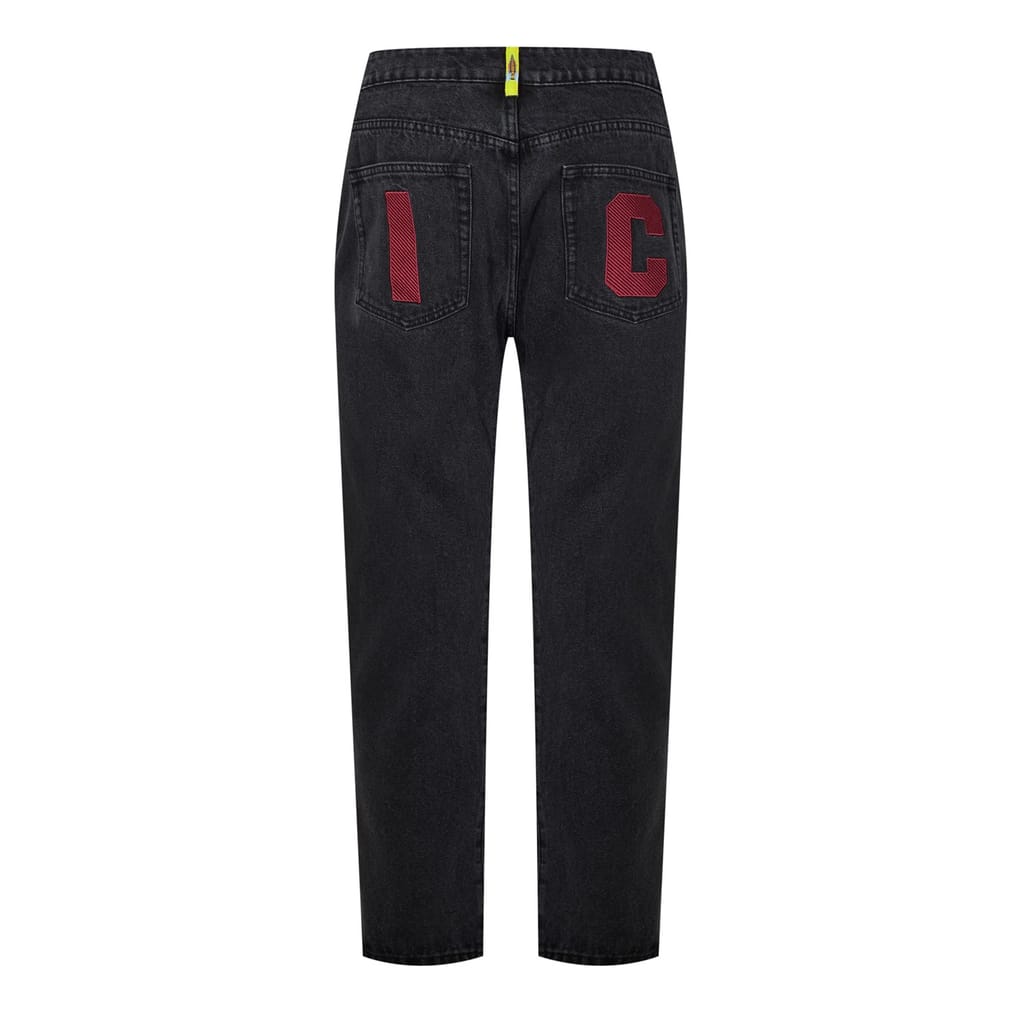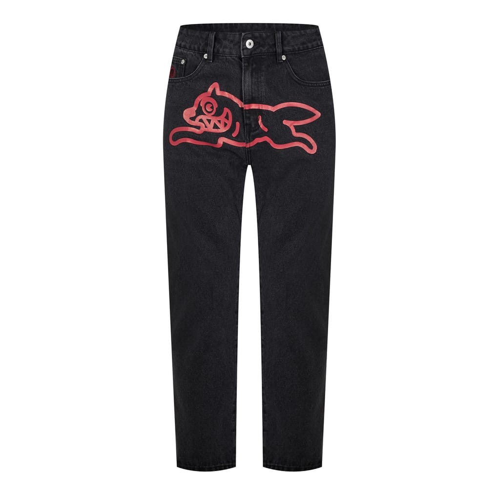 Icecream jeans feature a straight fit and a five-pocket design, adorned with a playful dog graphic print. The jeans include practical embellishments such as front, back, and patch pockets. They are equipped with a zip fly, front button, and belt loops for a secure fit. -