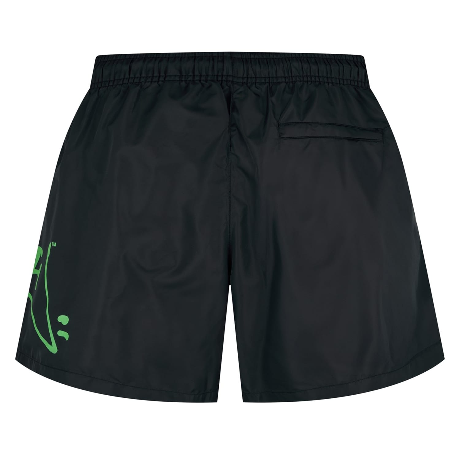 Off White swimwear features a swim bottom design, perfect for swimming activities. It showcases a graphic print pattern and includes a logo embellishment. The elasticated waistband ensures a comfortable fit, making it a stylish and practical choice for your swimwear collection. -