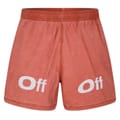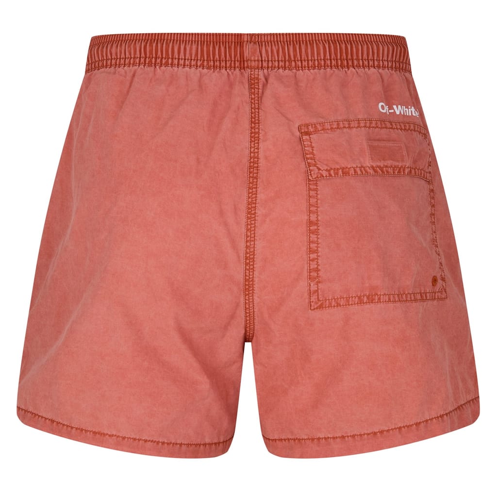 Off White swimwear bounce swim bottom features an elasticated waistband for a comfortable fit. Adorned with a distinctive logo and lettering graphic, it includes a practical back pocket. This piece combines style and functionality, making it a standout choice for your swimwear collection. -