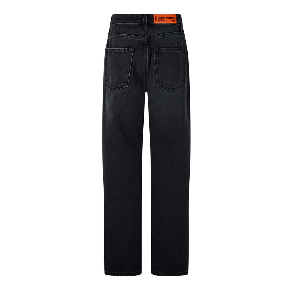 Heron Preston jeans feature a five-pocket design with a zip fly and button closure. The slim fit offers a modern silhouette, while the logo embellishment adds a distinctive touch. These jeans are a versatile addition to any wardrobe, combining style and functionality effortlessly. -