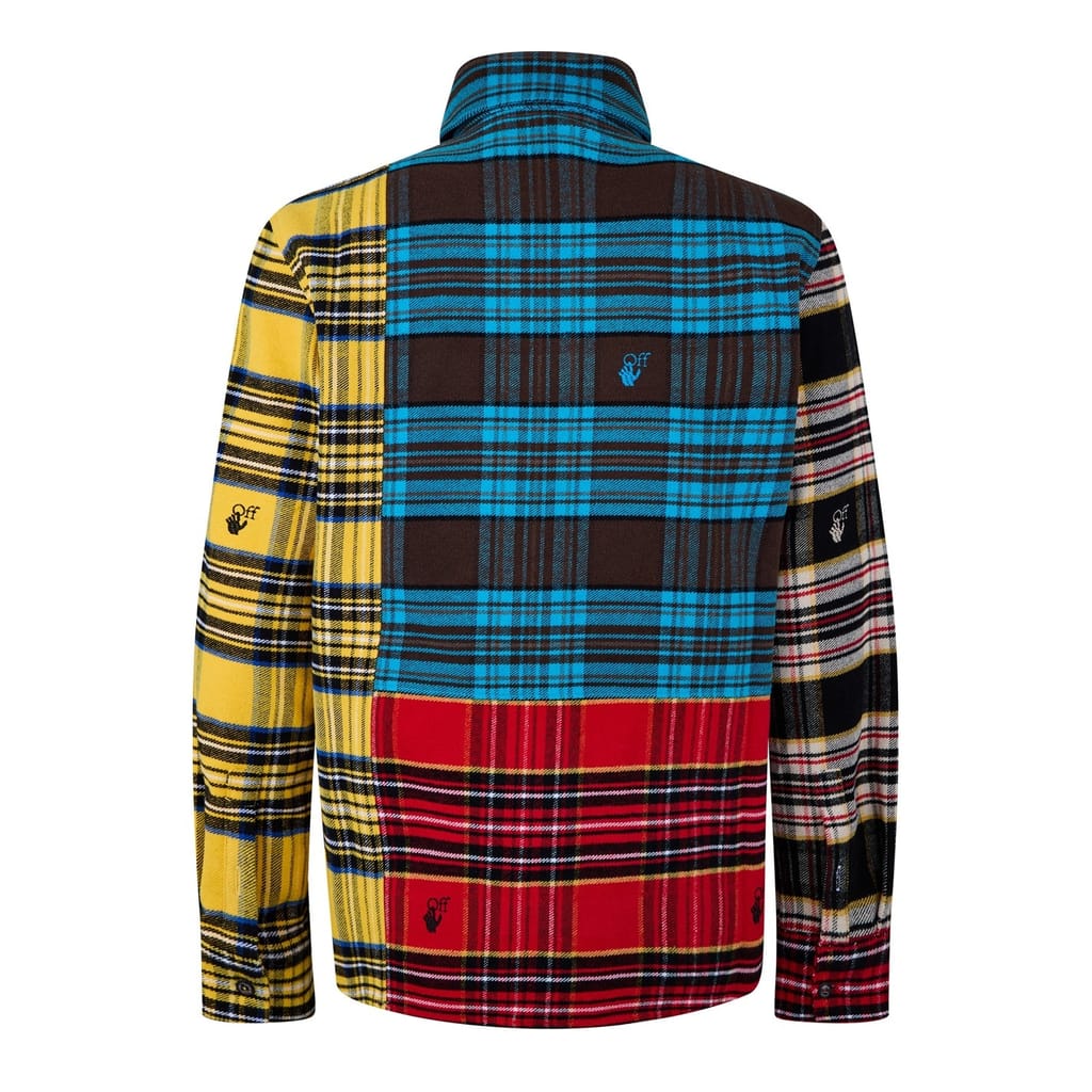 This Off White top features a classic plaid pattern and a shirt collar. Designed with long sleeves and a button-down closure, it offers a regular fit. The top is embellished with a subtle logo, adding a touch of brand identity. -
