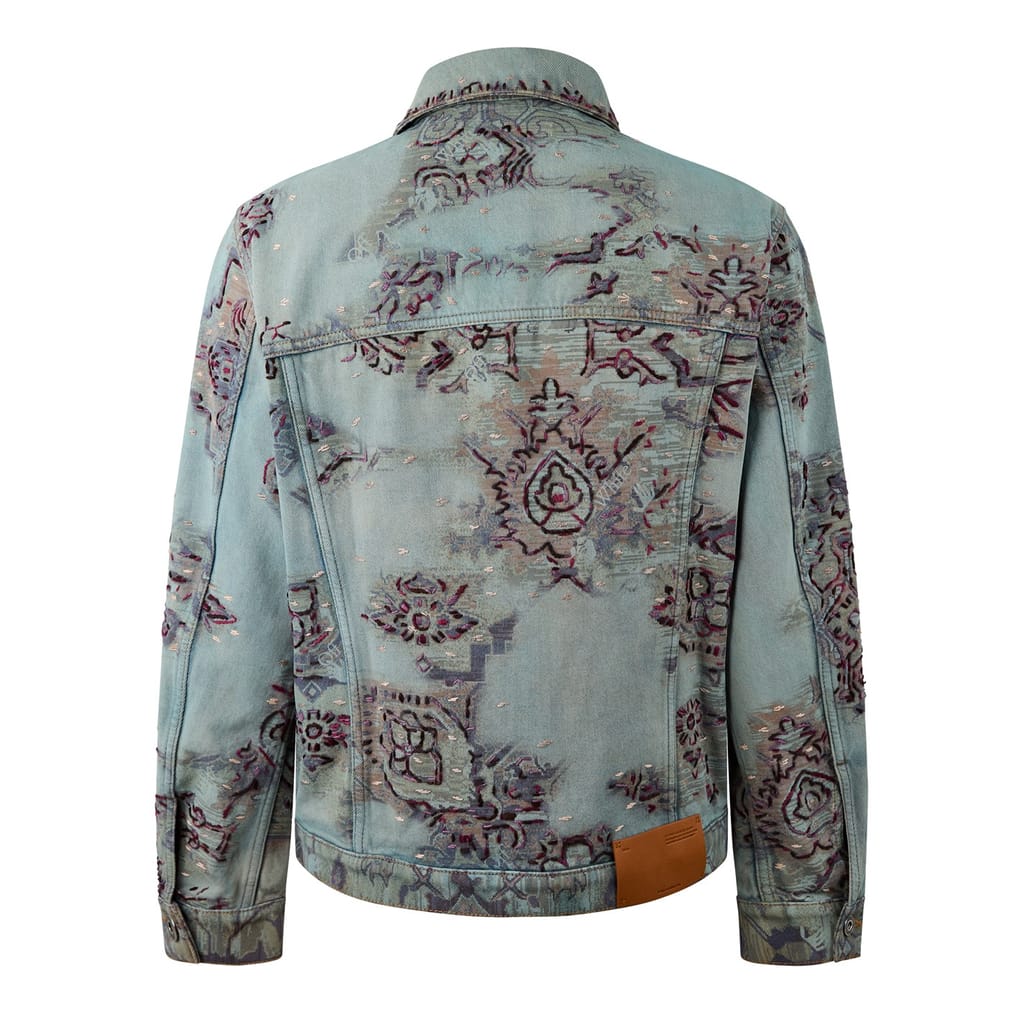 Elevate your casual staples with the Tapestry Denim Jacket from Off-White. A modern take on a classic silhouette with a curved hem for a stylish finish, this men's jacket is perfect for big nights out with friends or fashion-forward events like gallery openings and exhibition launches.