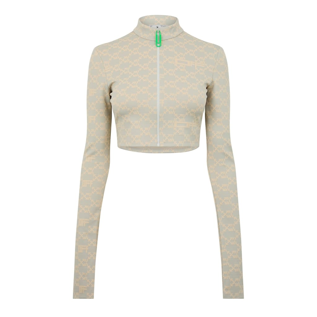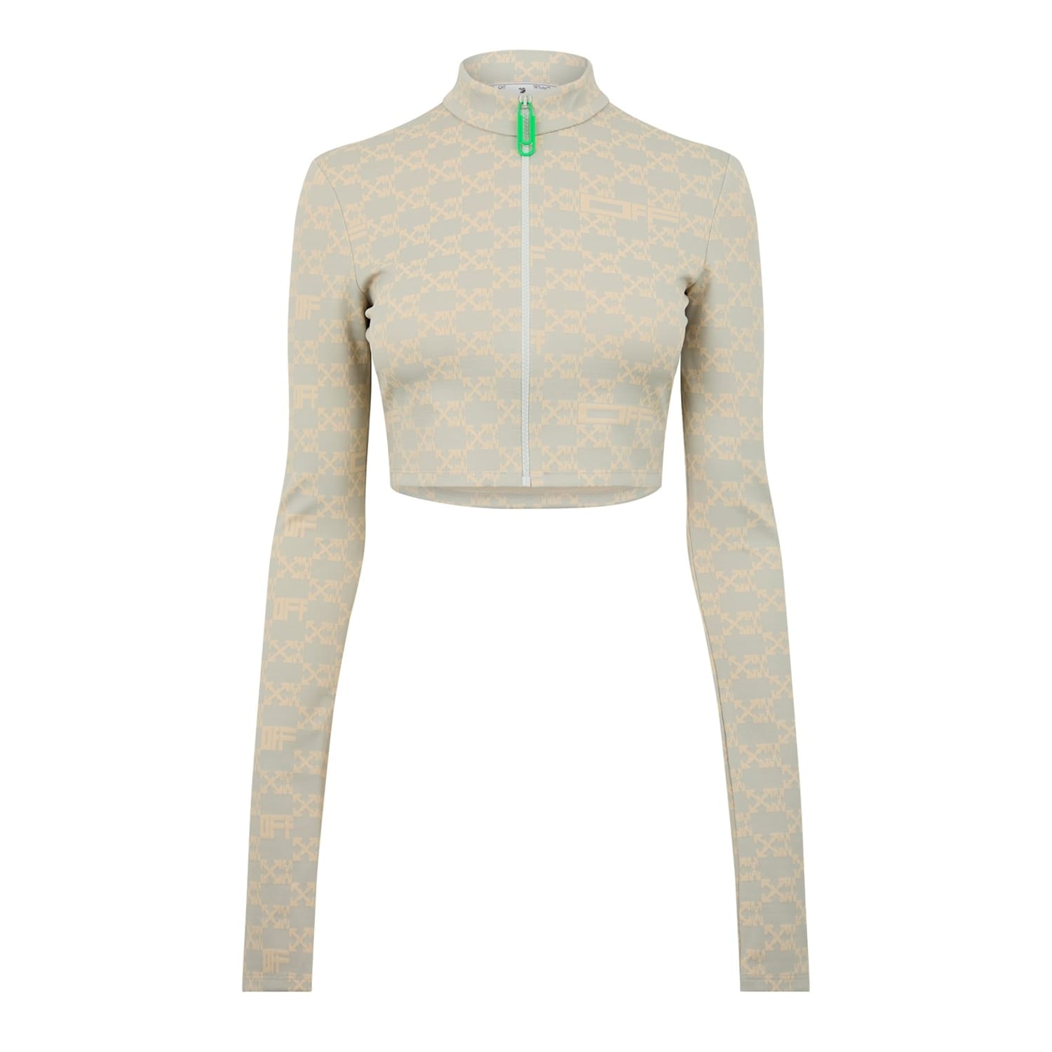 This Off-White track top is a stylish addition to your athletic wardrobe. Featuring a turtleneck and long sleeves, it offers a slim fit that enhances your silhouette. The cropped length adds a modern touch, while the band collar complements the all-over logo pattern. With a convenient zipper closure, this athletic sweater is both functional and fashionable. -