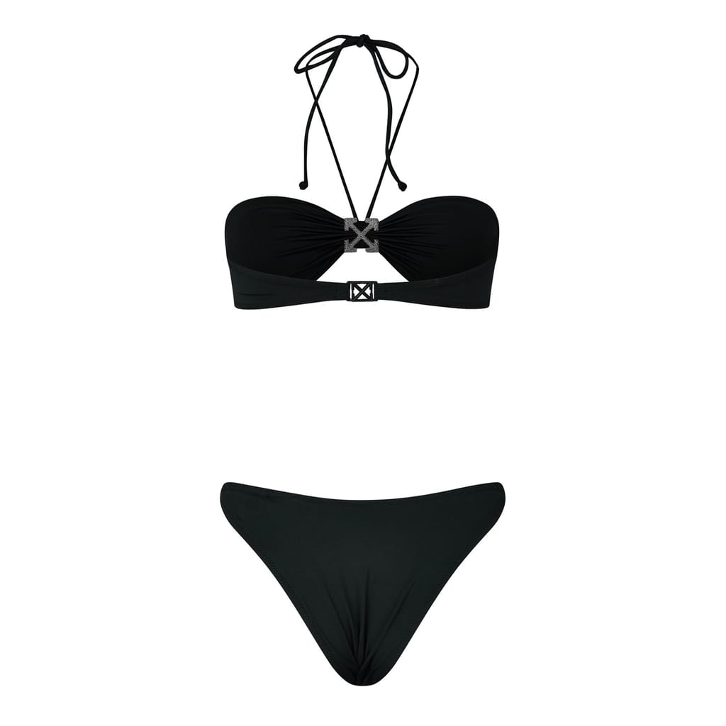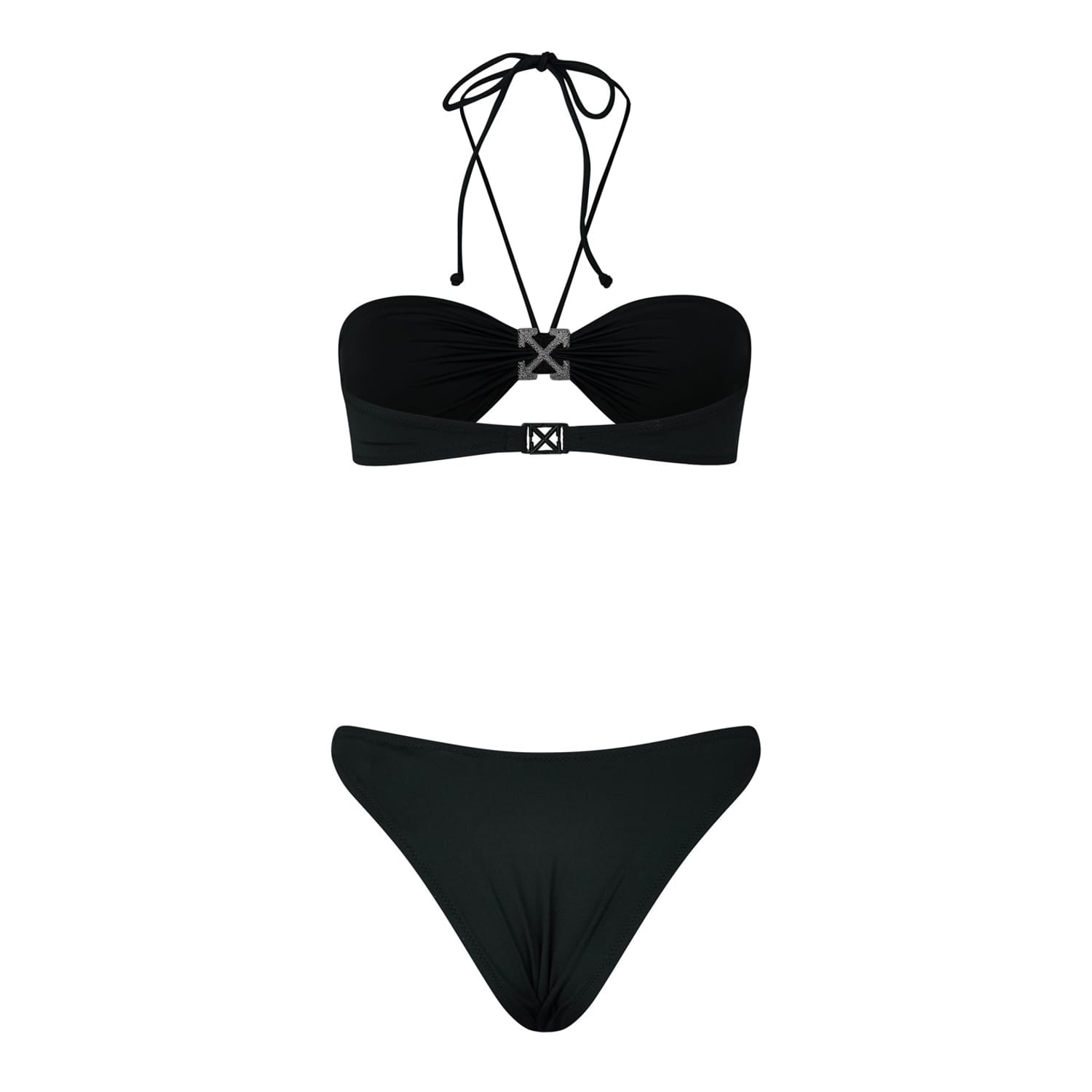Discover Off White swimwear, featuring a stylish swim bottom with a tie closure. Part of the swimming collection, this bikini-style piece is adorned with a distinctive logo embellishment, offering a unique touch to your swimwear ensemble. -