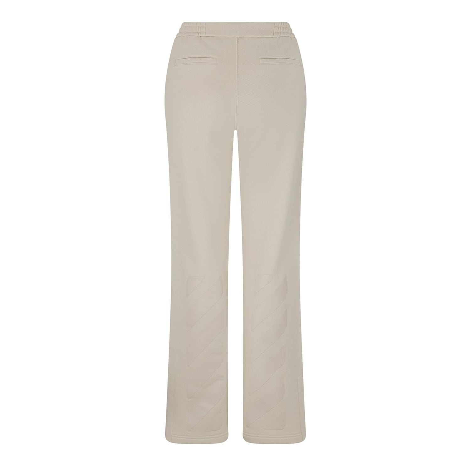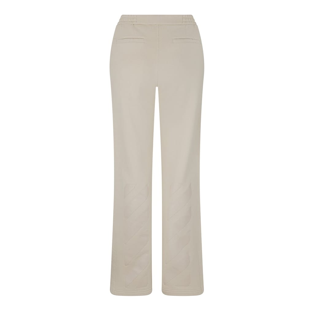 Off White joggers feature an elasticated waistband for comfort and a distinctive logo embellishment, offering a stylish and relaxed fit. -