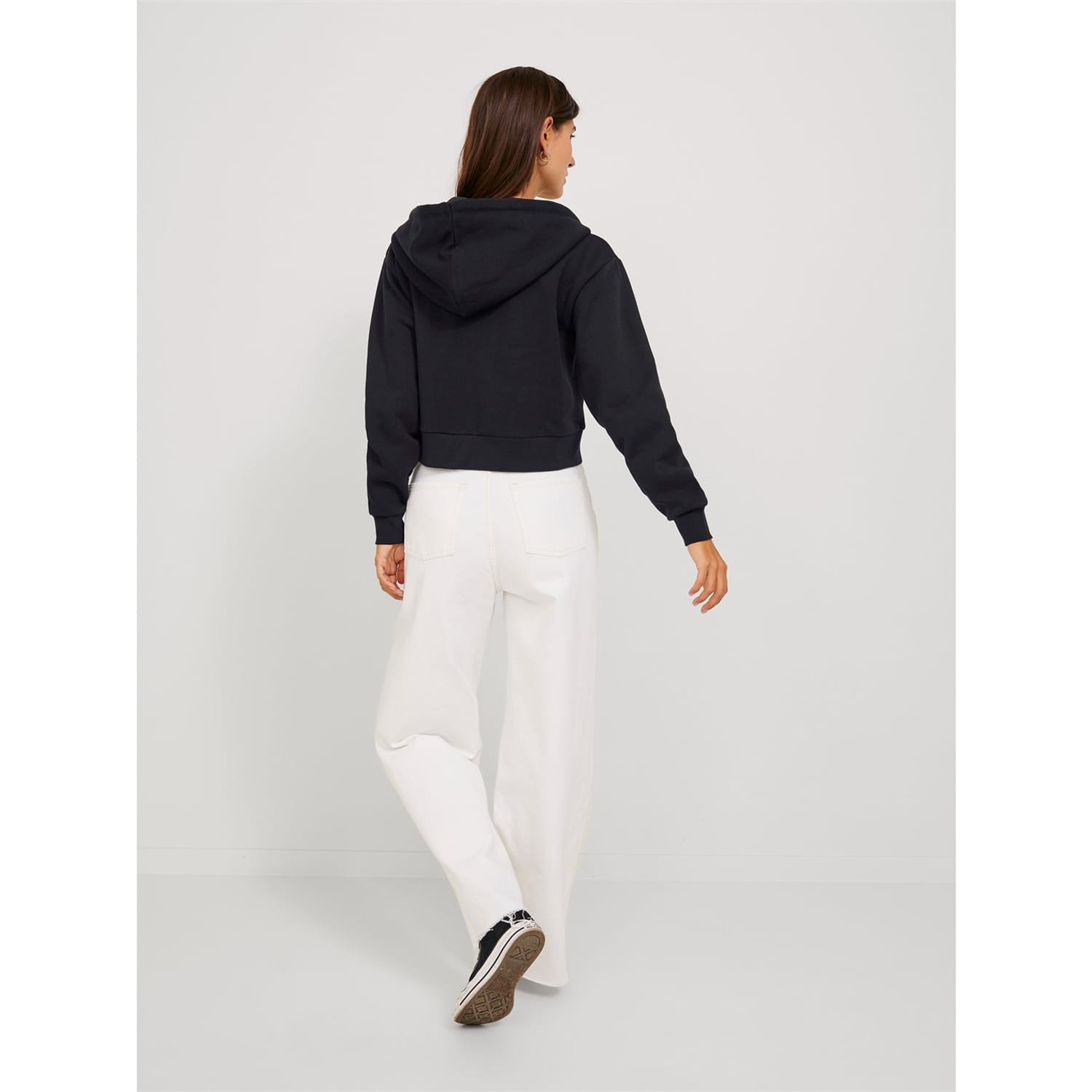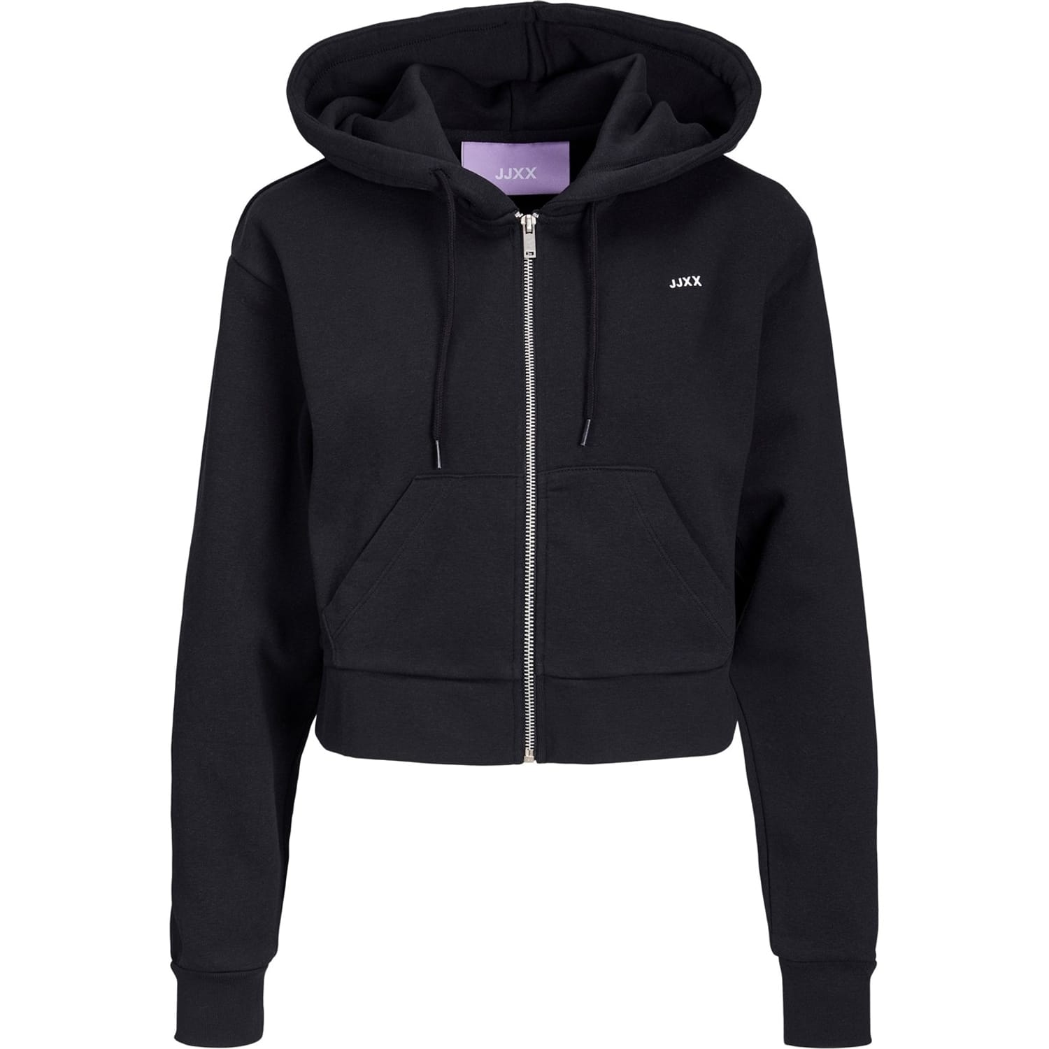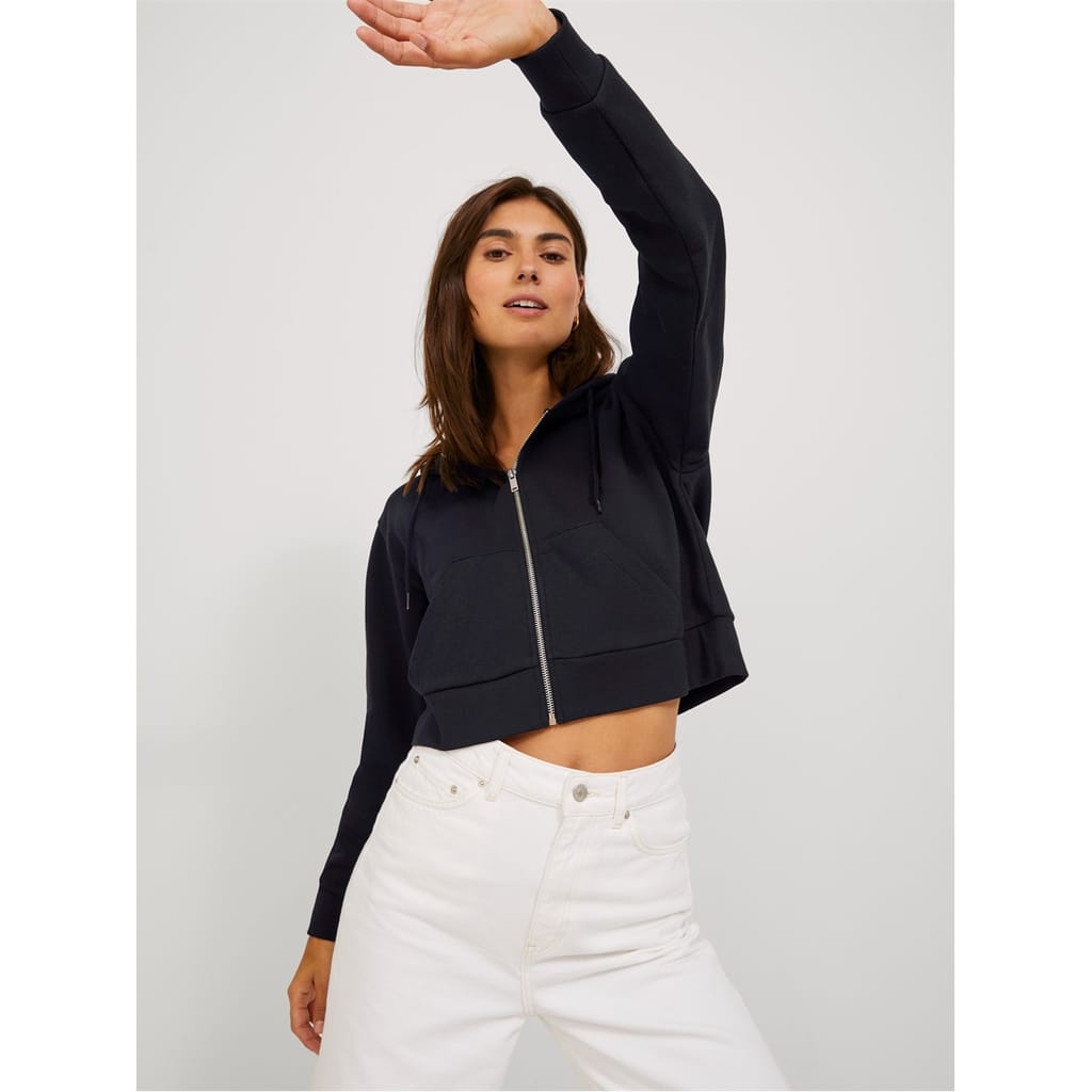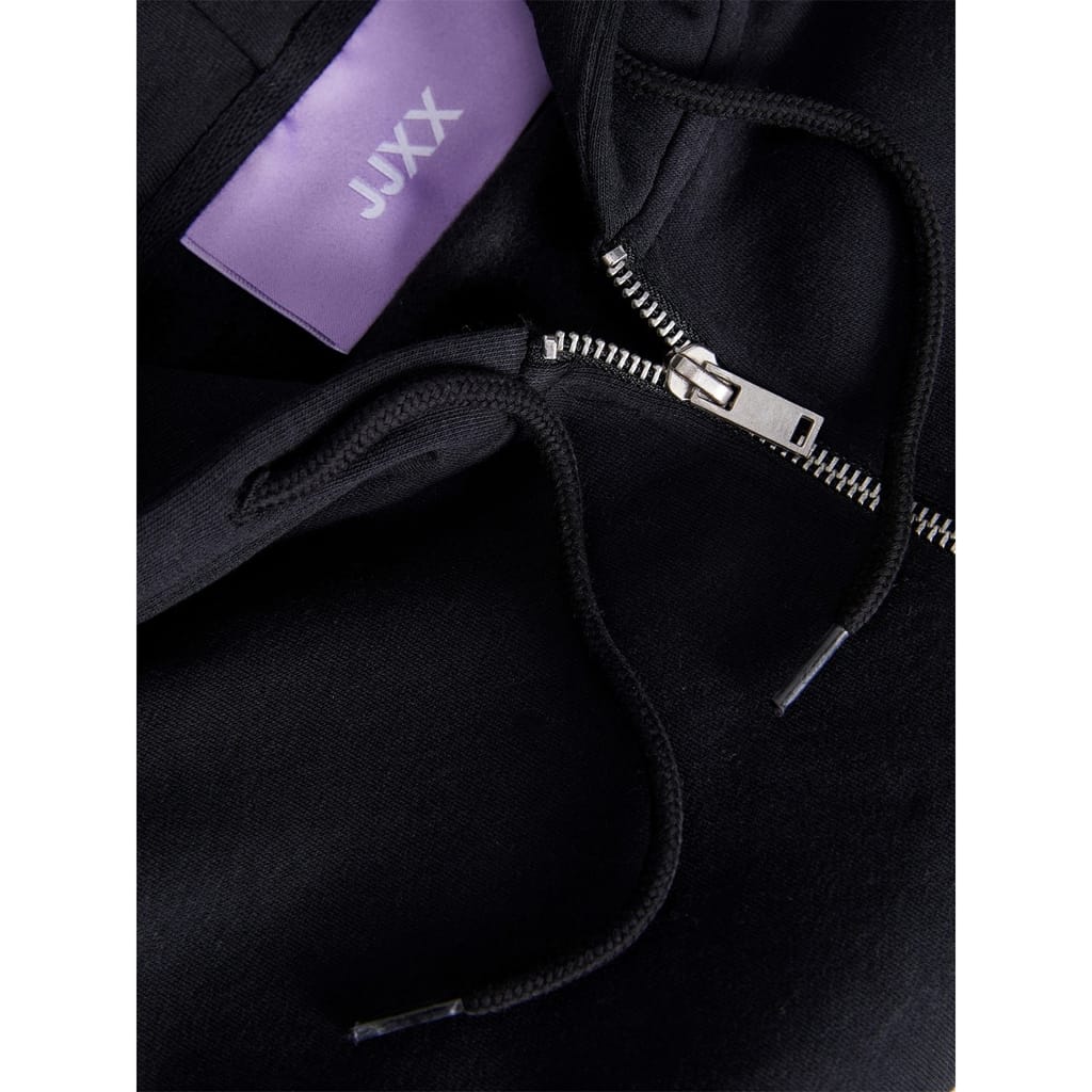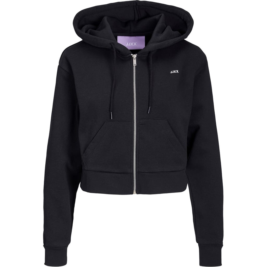 This JJXX sweatshirt jacket is perfect for casual wear. It features a hooded design with a zipper closure, offering a practical and stylish look. The regular fit ensures comfort, while the ribbed cuffs and hem add a touch of detail. The solid pattern is complemented by logo embellishments and lettering graphics, making it a versatile addition to your wardrobe. -