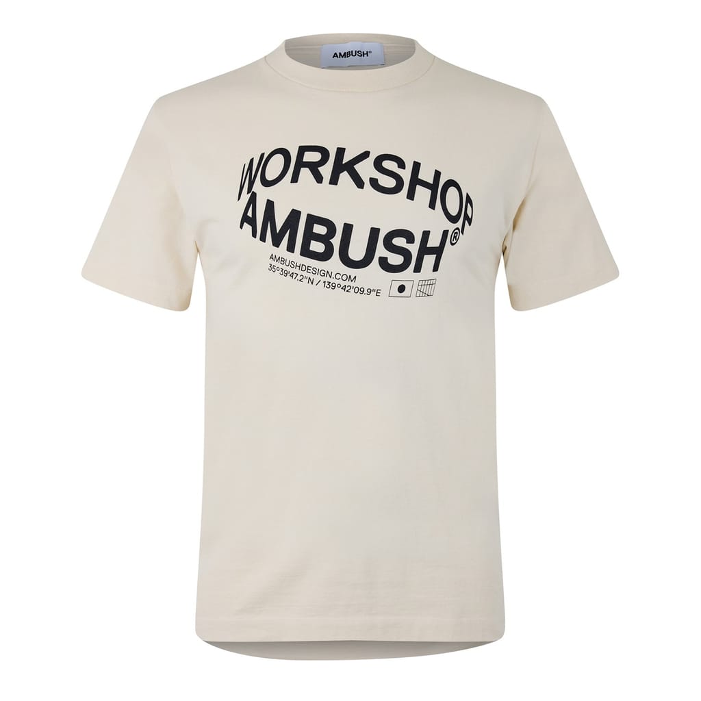 This Ambush top is a casual staple featuring a regular fit and short sleeves. The crew neck design is adorned with a distinctive graphic print, highlighted by the iconic R logo embellishment. Perfect for those who appreciate a blend of style and comfort. -