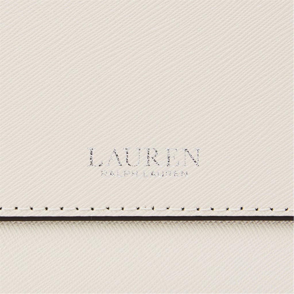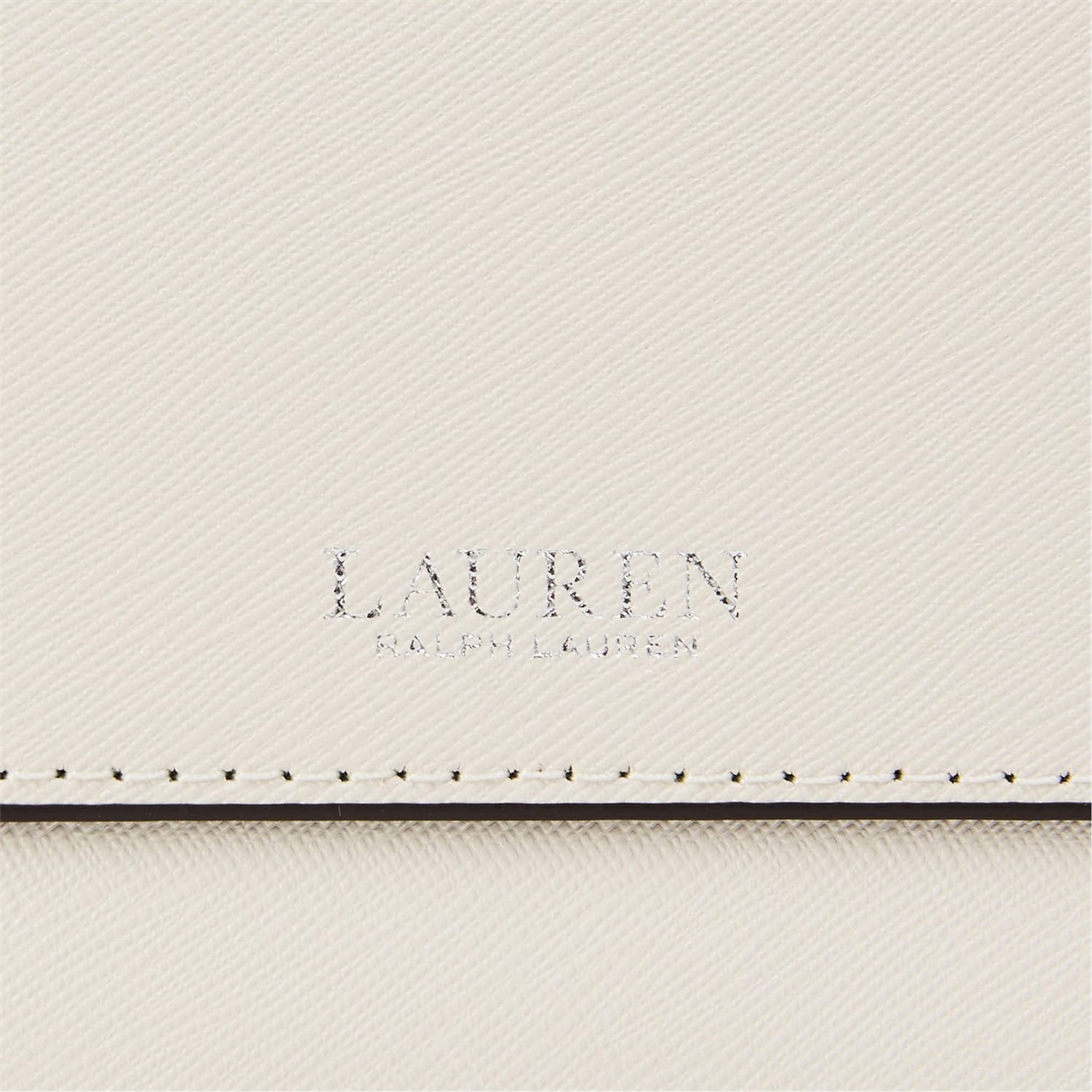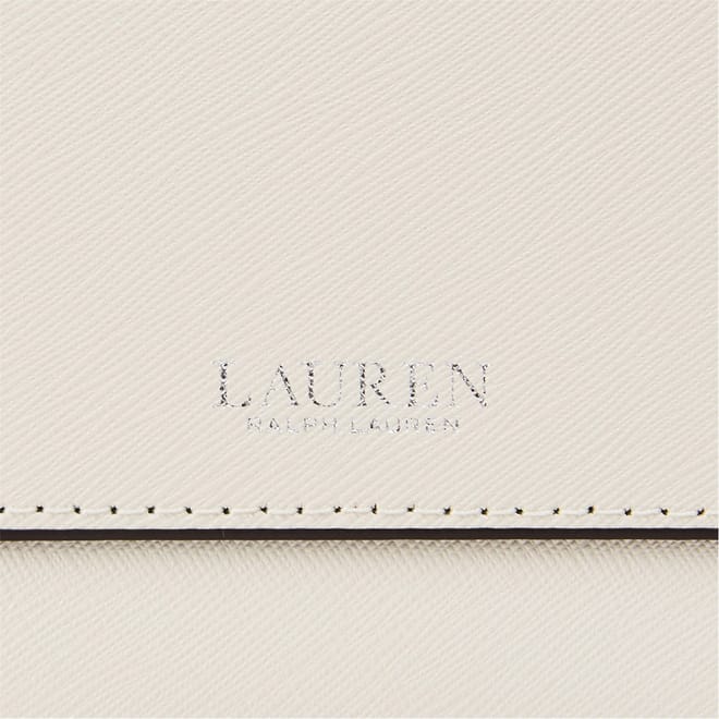 - Lauren Ralph Lauren monogram in brass-finished metal on the front for instant brand recognition.