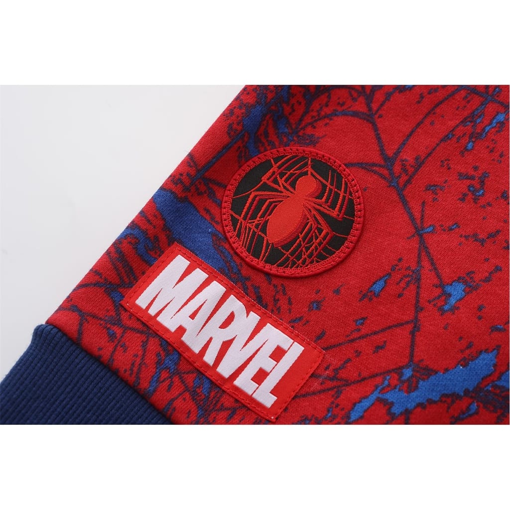 -- Construction/Design: A cosy pullover with a relaxed fit and ribbed cuffs and hem for a snug feel. Features a bold Spider-Man graphic on the front, perfect for young fans.