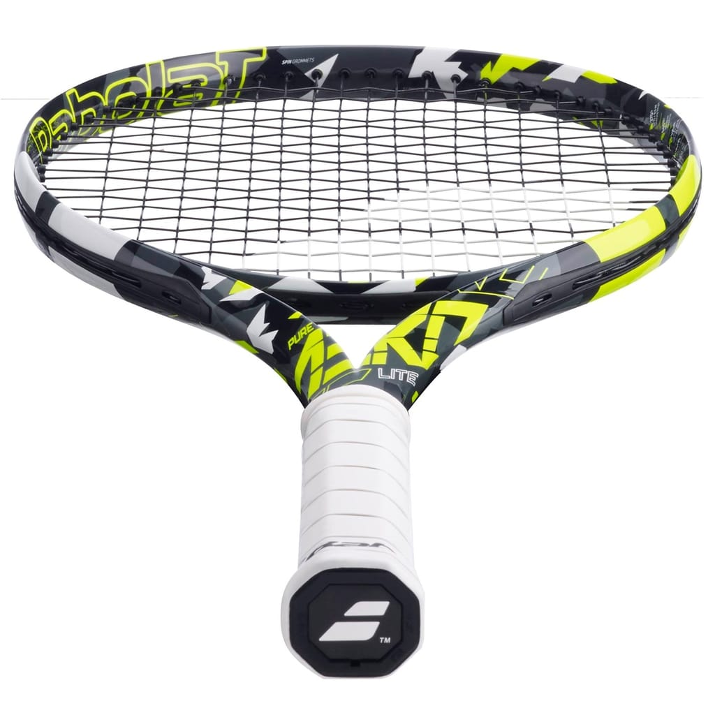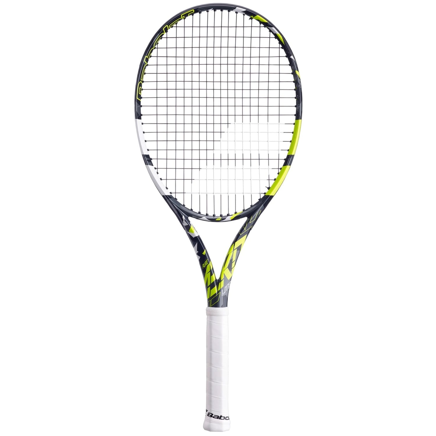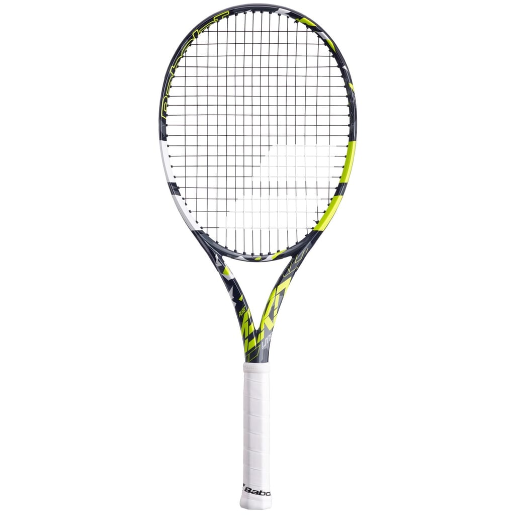 The Babolat Aero tennis racket is designed for sporting activity enthusiasts. Featuring a striking graphic print, this sports equipment is crafted to enhance your game with precision and style. Ideal for those seeking performance and reliability on the court, the Aero combines innovative design with Babolat's renowned expertise in tennis equipment. -